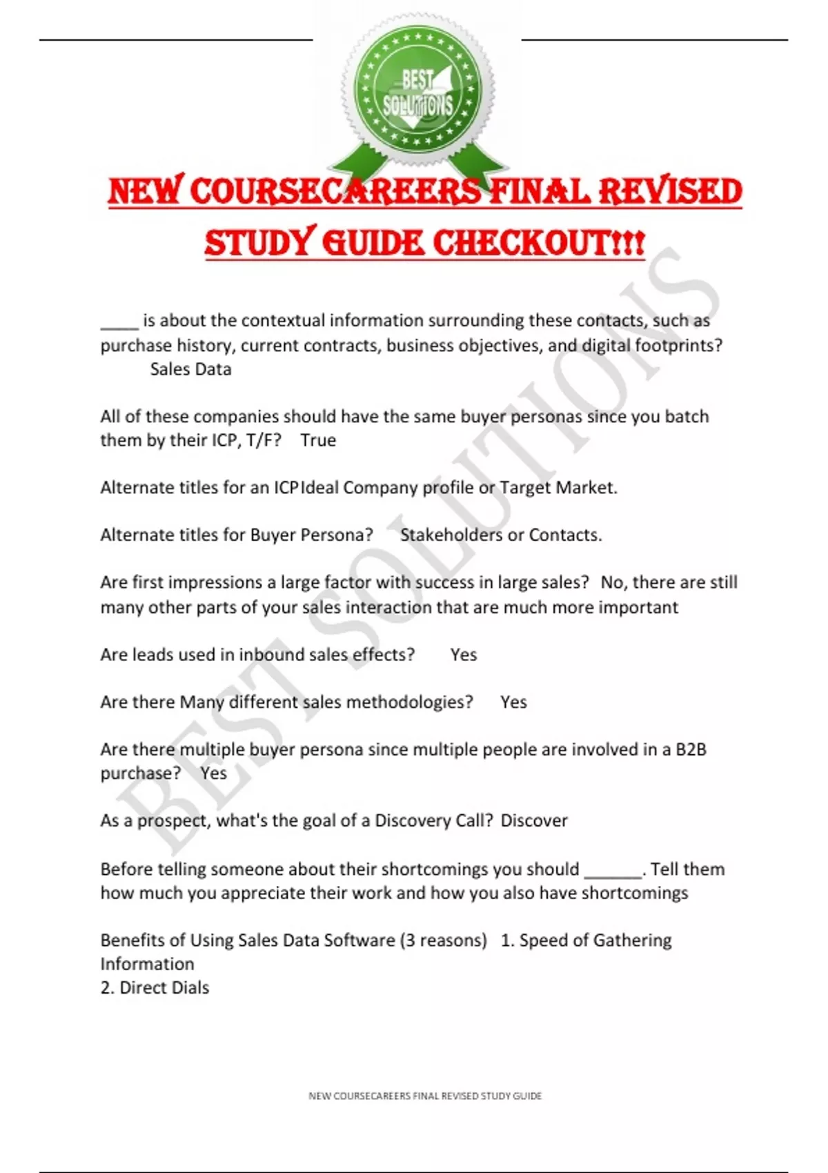 NEW COURSECAREERS FINAL REVISED STUDY GUIDE CHECKOUT!!!
