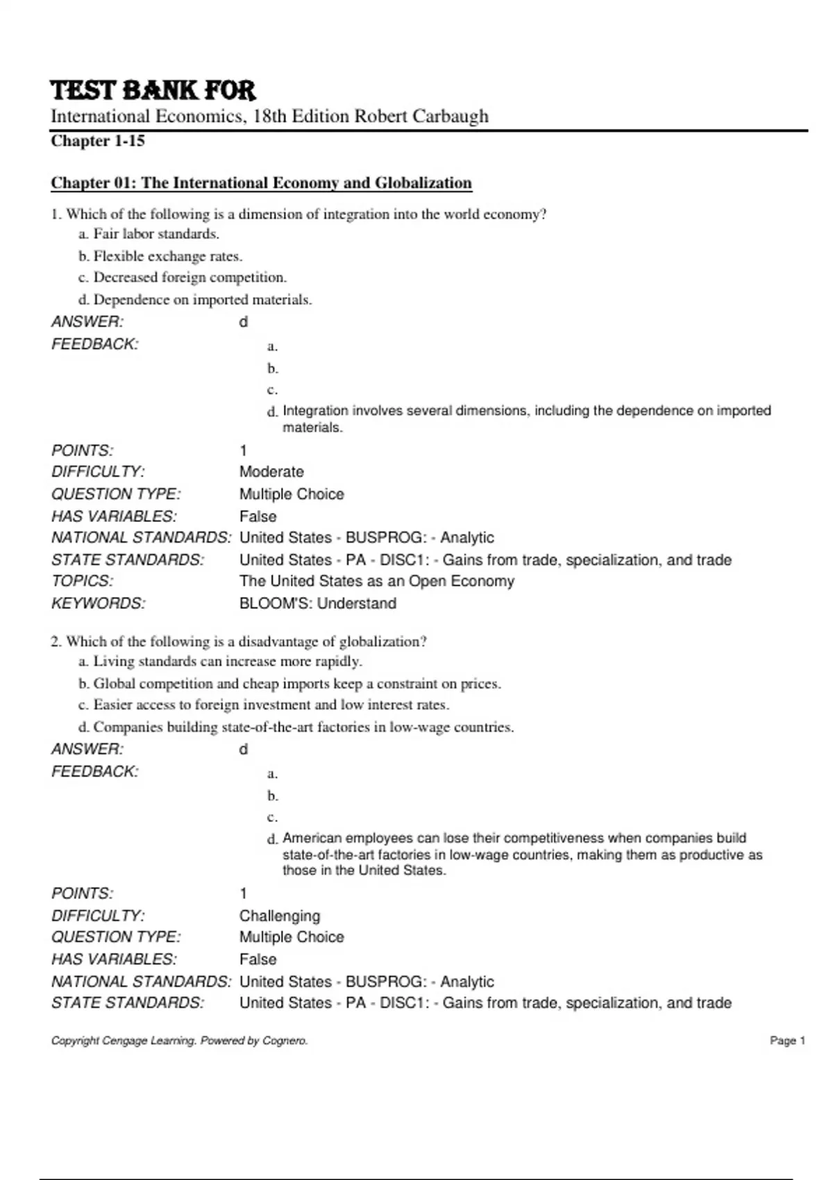 Test Bank For International Economics, 18th Edition by Robert Carbaugh Chapter 1-15
