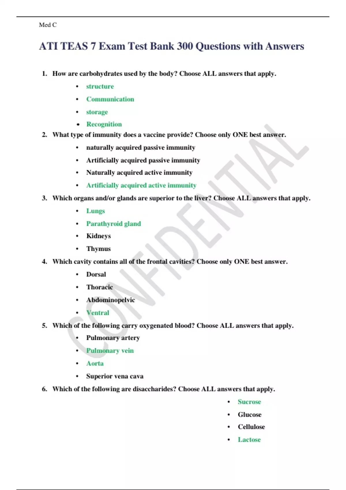ATI TEAS 7 Exam Test Bank 300 Questions with Answers