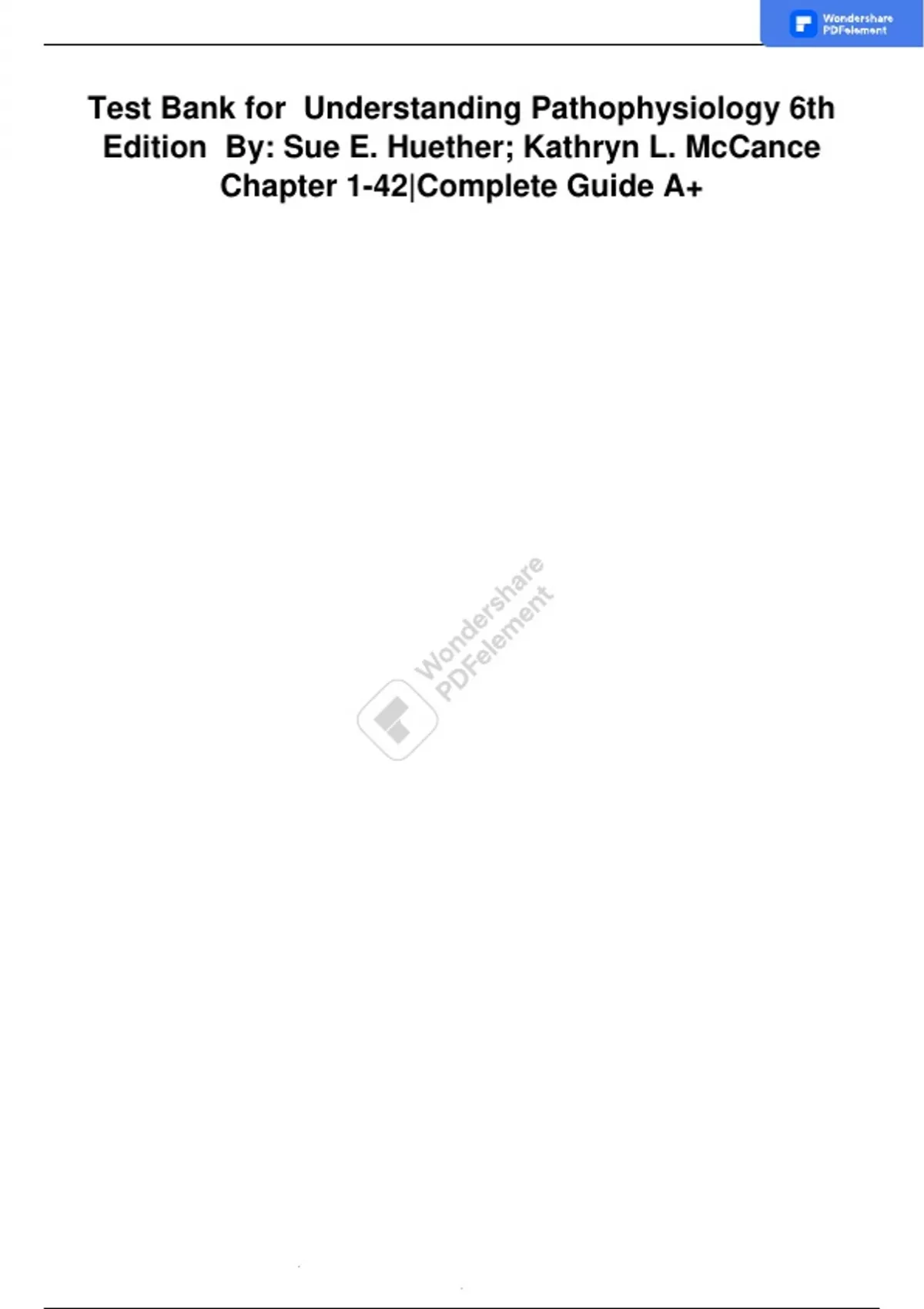 , Test .Bank for Understanding Pathophysiology 6th Edition