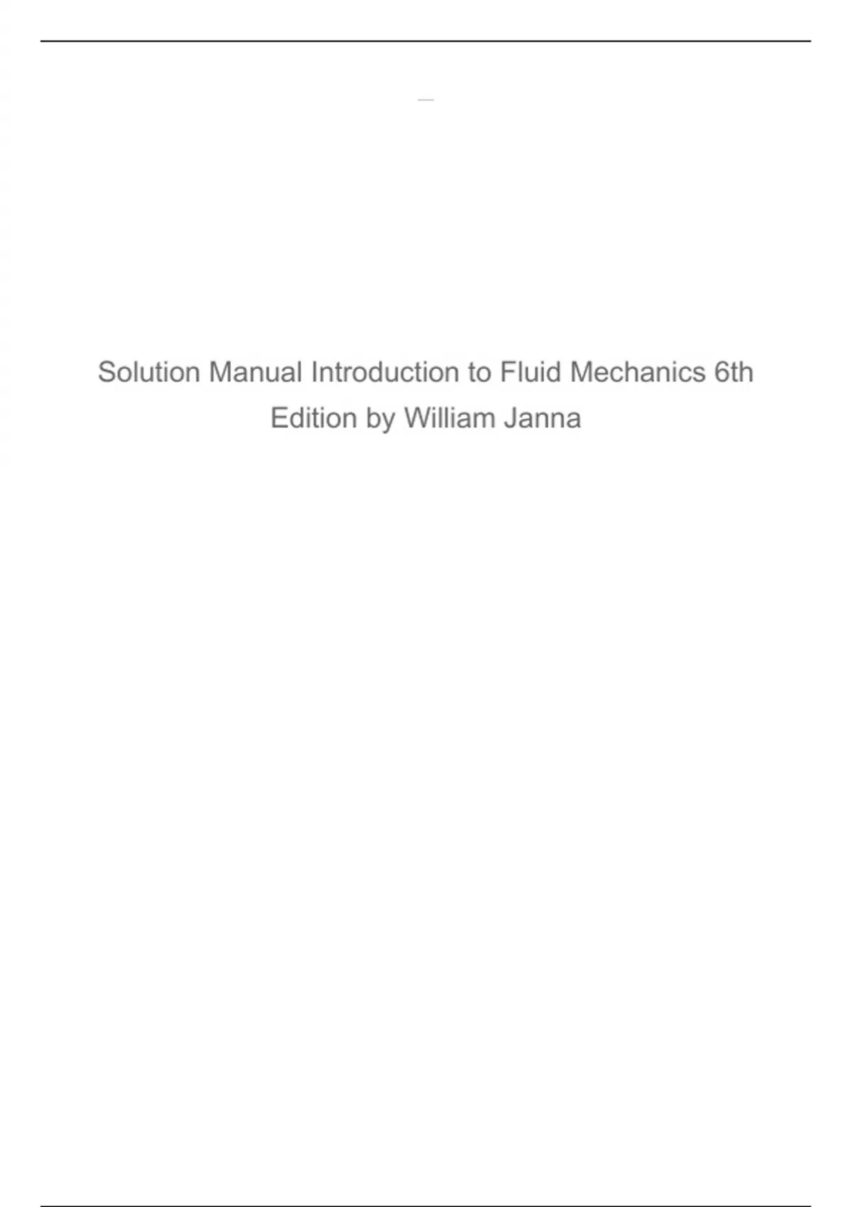 Solution Manual Introduction to Fluid Mechanics 6th Edition by William Janna