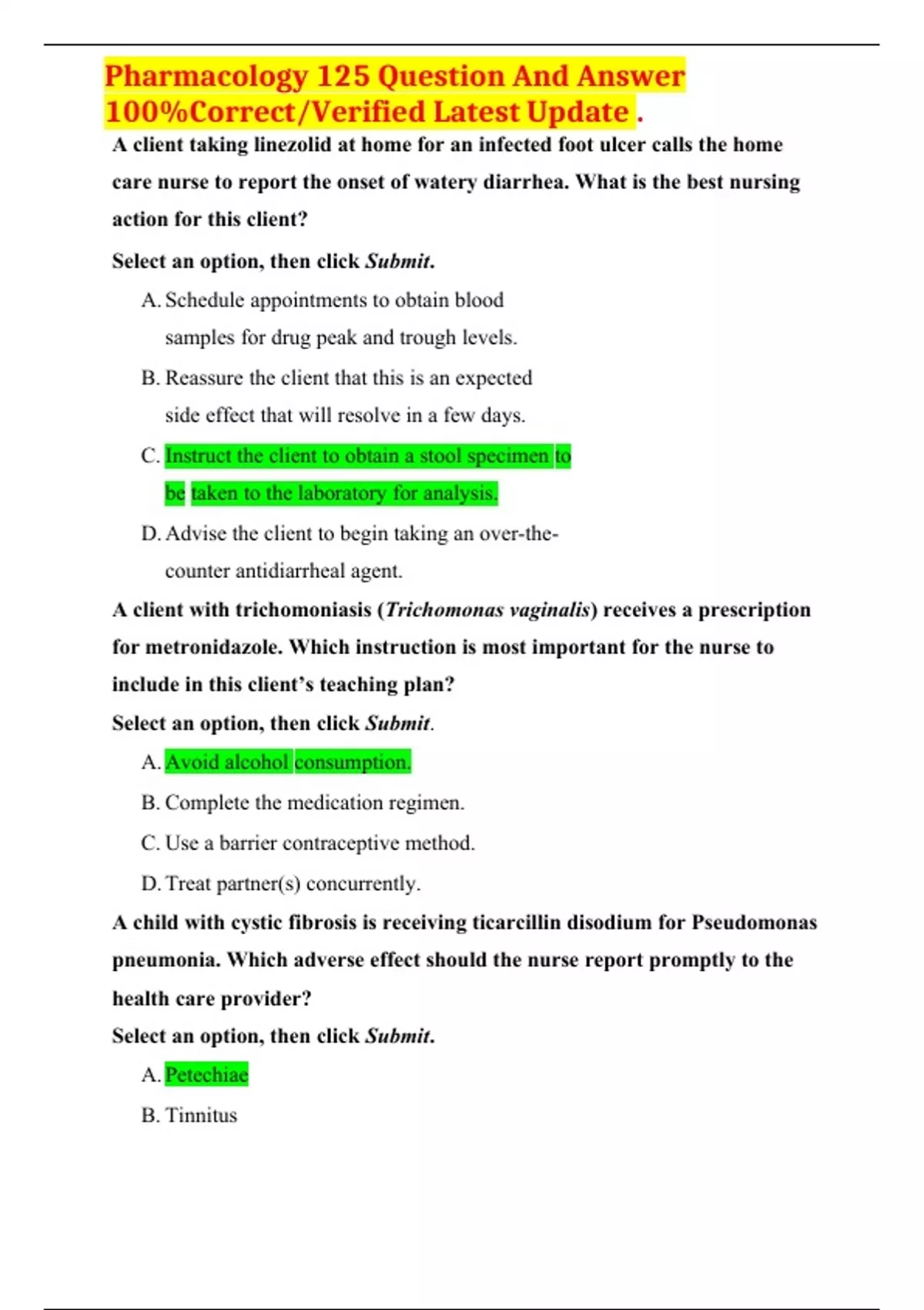 ,Pharmacology 125 Question And Answer