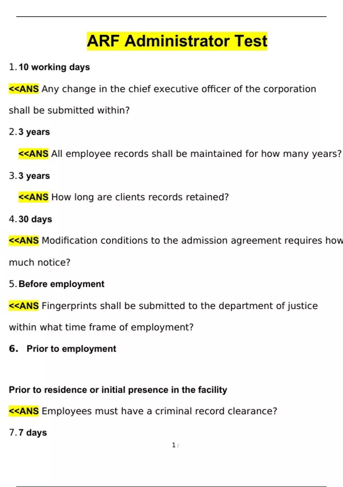 ARF Administrator Test Questions and Answers (2024 / 2025) (Verified Answers)PDF
