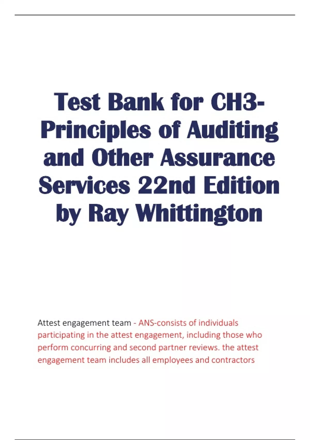 Test Bank for CH3- Principles of Auditing and Other Assurance Services 22nd Edition by Ray Whittington