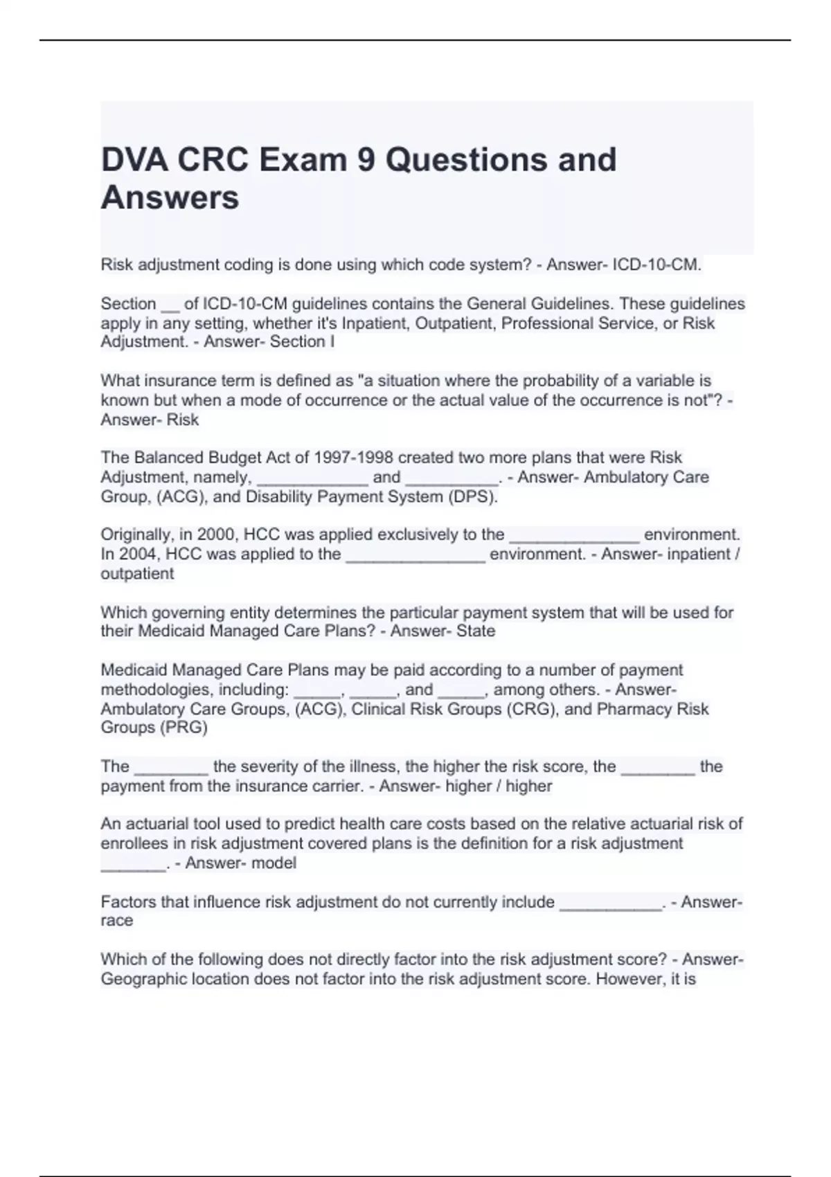 DVA CRC Exam 9 Questions and Answers 100% correct