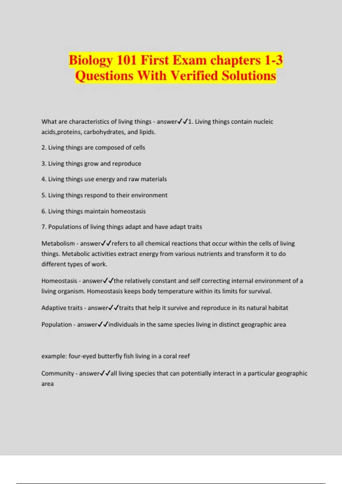 Biology 101 First Exam chapters 1-3 Questions With Verified Solutions