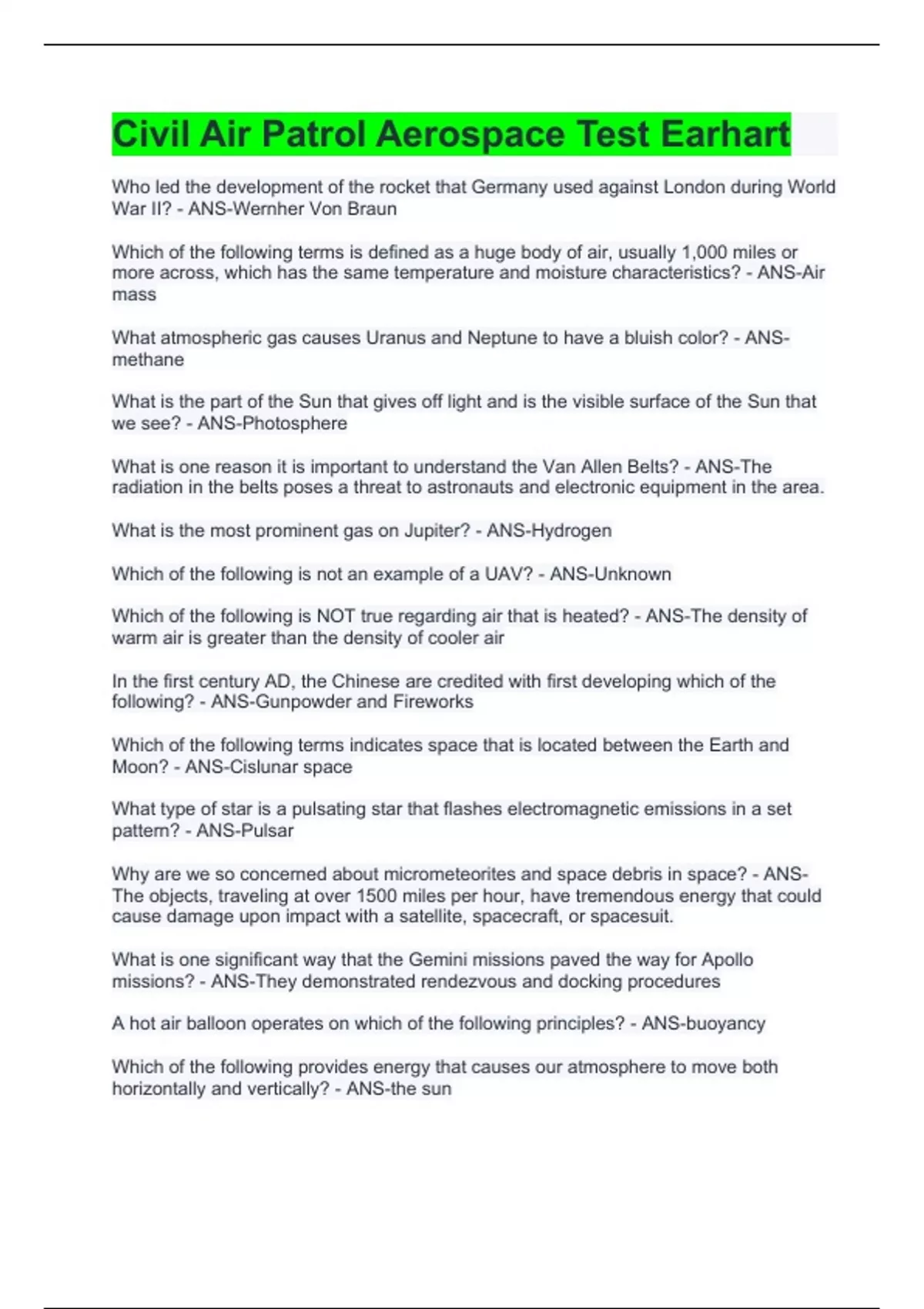 Civil Air Patrol Aerospace Test Earhart