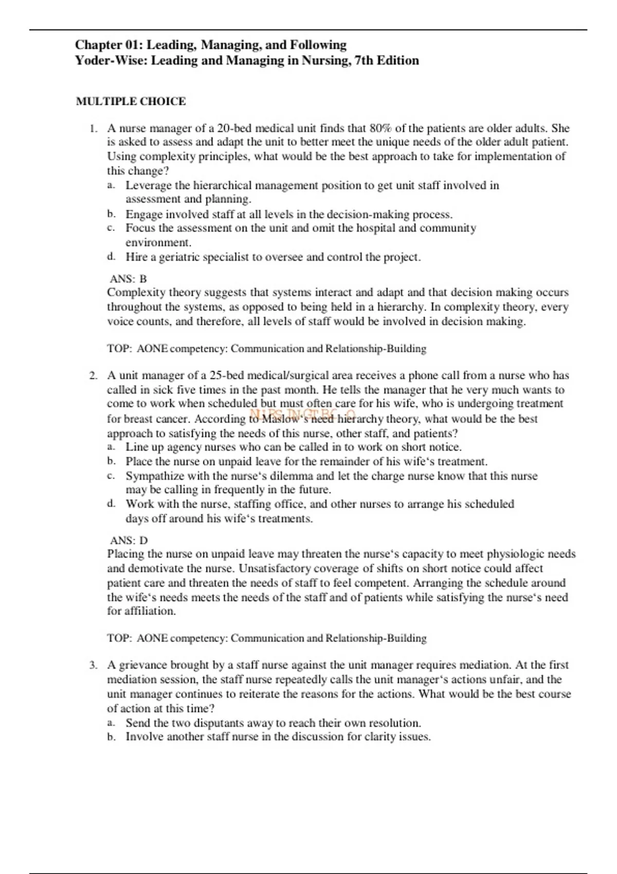 1. A nurse manager of a 20-bed medical unit finds that 80% of the patients are older adults. She