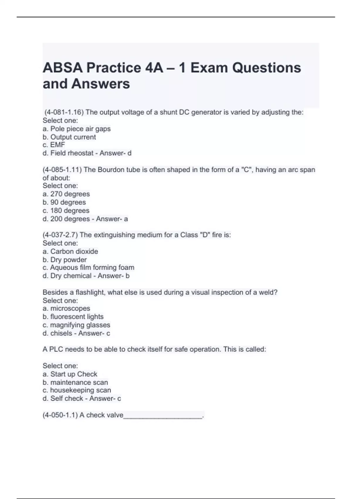 ABSA Practice 4A – 1 Exam Questions and Answers