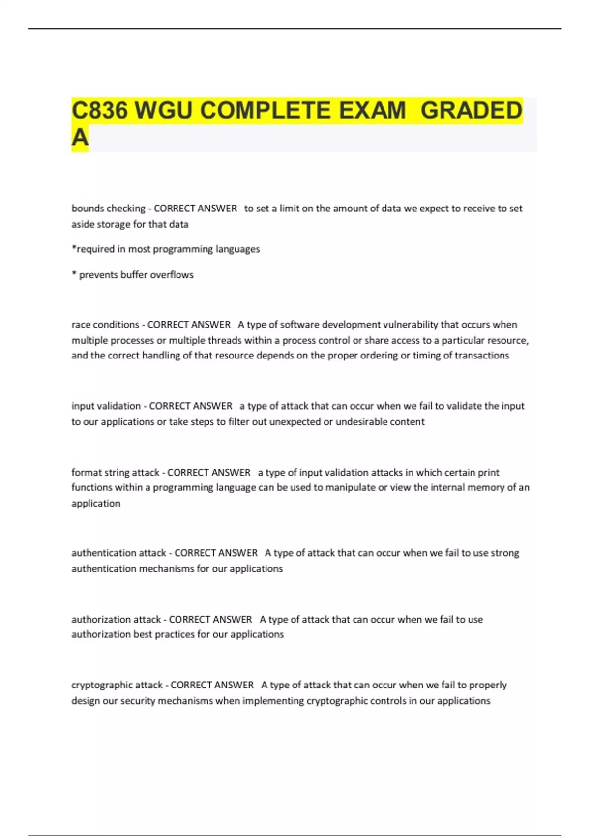 C836 WGU COMPLETE EXAM GRADED A