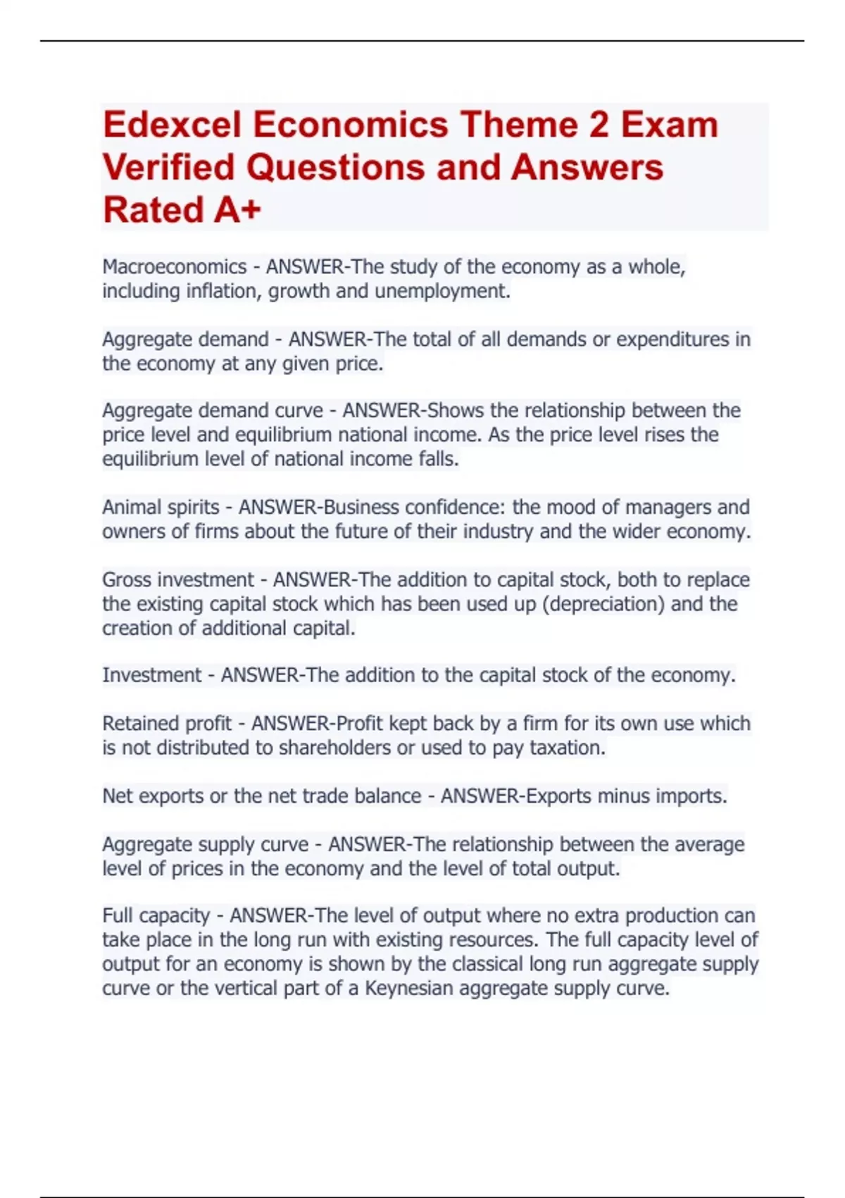 Edexcel Economics Theme 2 Exam Verified Questions and Answers Rated A+