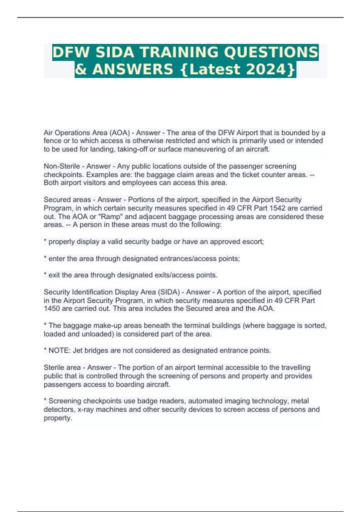 DFW SIDA TRAINING QUESTIONS & ANSWERS {Latest 2024}