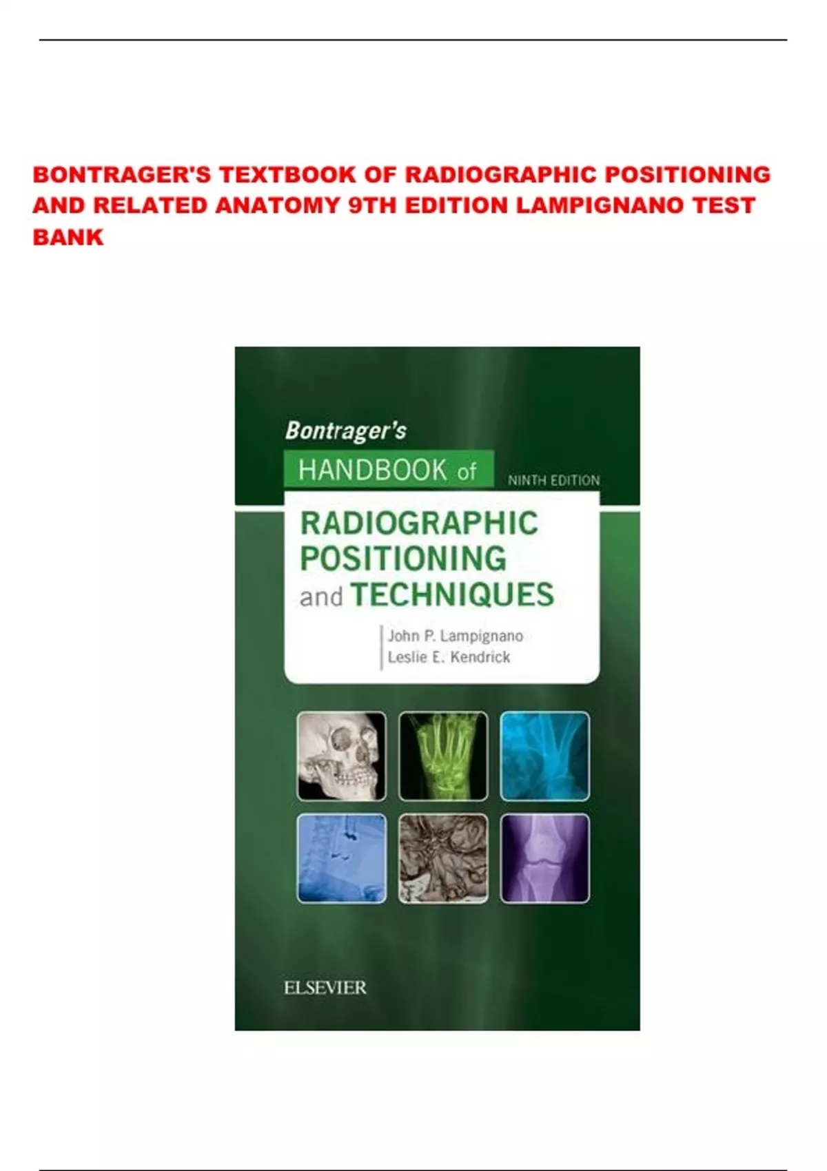 BONTRAGER'S TEXTBOOK OF RADIOGRAPHIC POSITIONING AND RELATED ANATOMY 9TH EDITION LAMPIGNANO TEST BANK