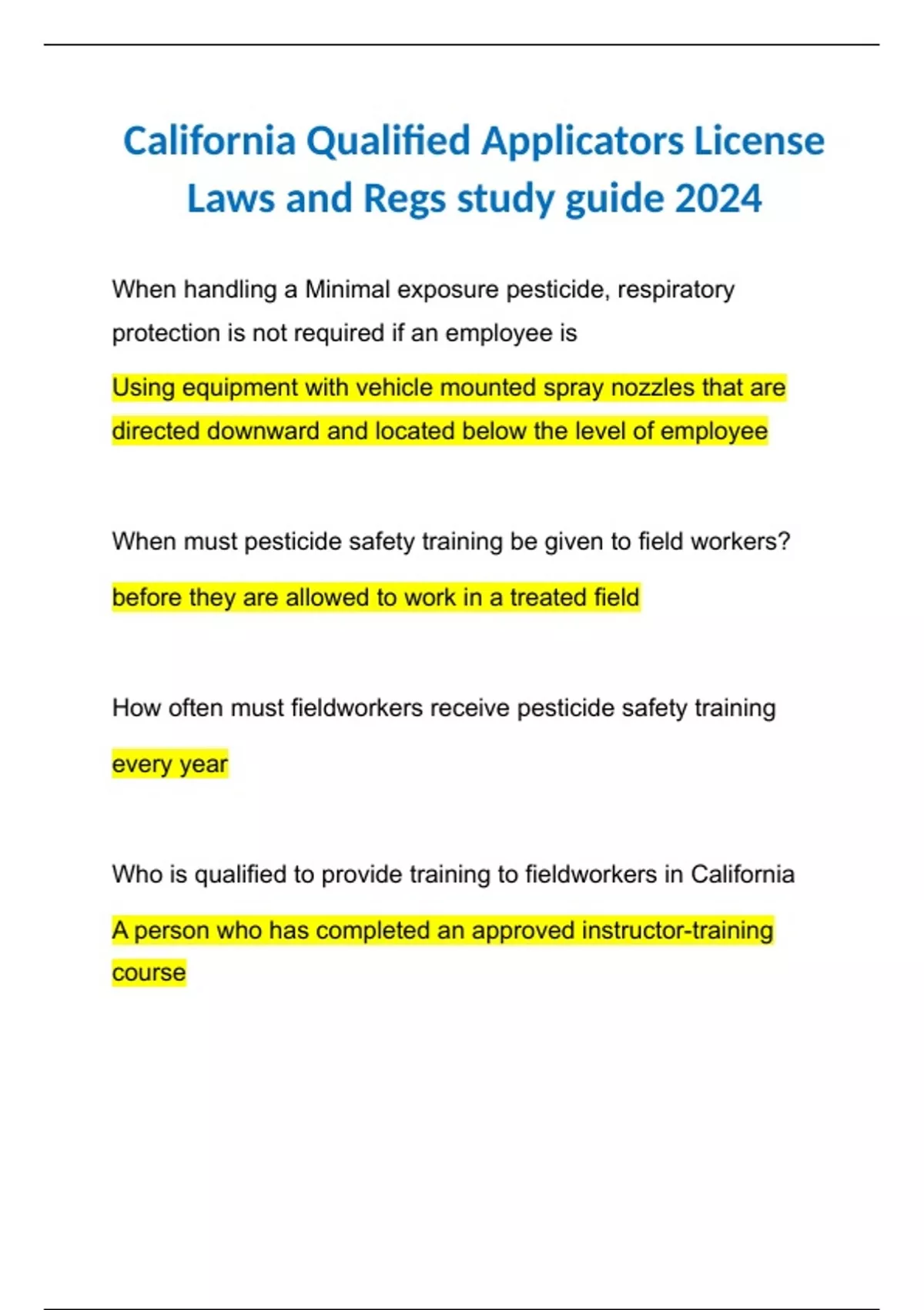 California Qualified Applicators License Laws and Regs study guide 2024 California Qualified Applicators License Laws and Regs study guide 2024 California Qualified Applicators License Laws and Regs study guide 2024