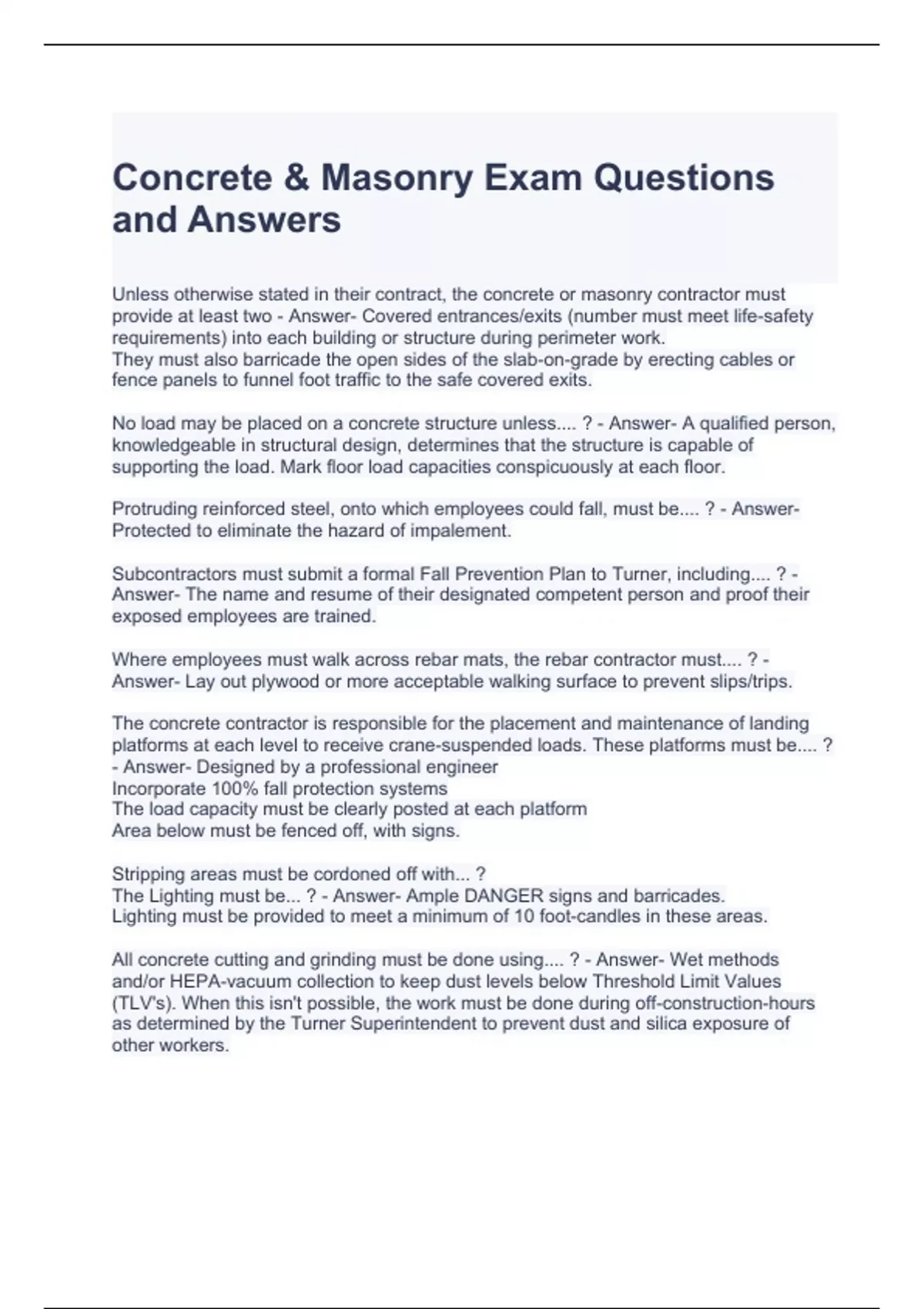 Concrete & Masonry Exam Questions and Answers