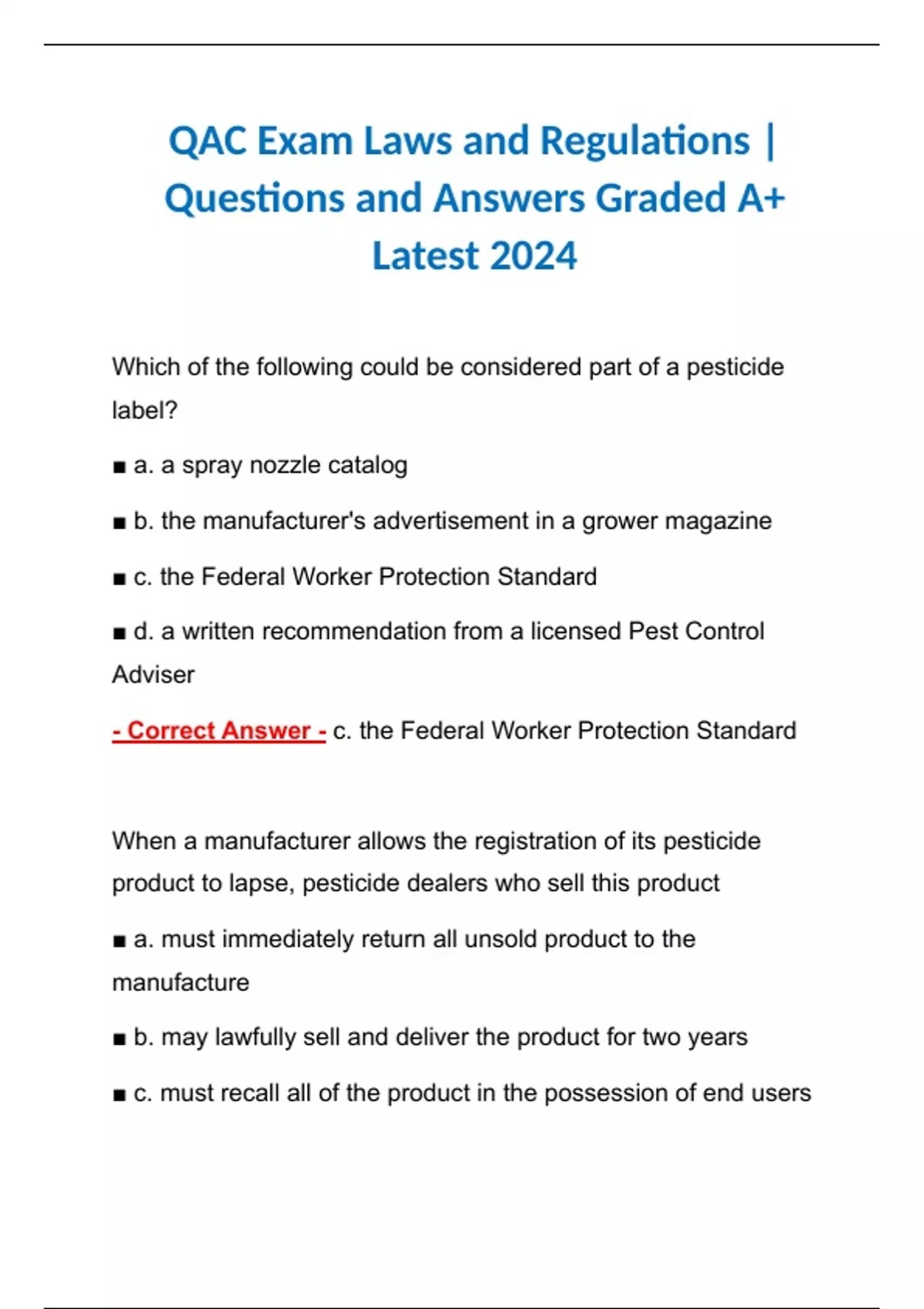 QAC Exam Laws and Regulations | Questions and Answers Graded A+ Latest 2024