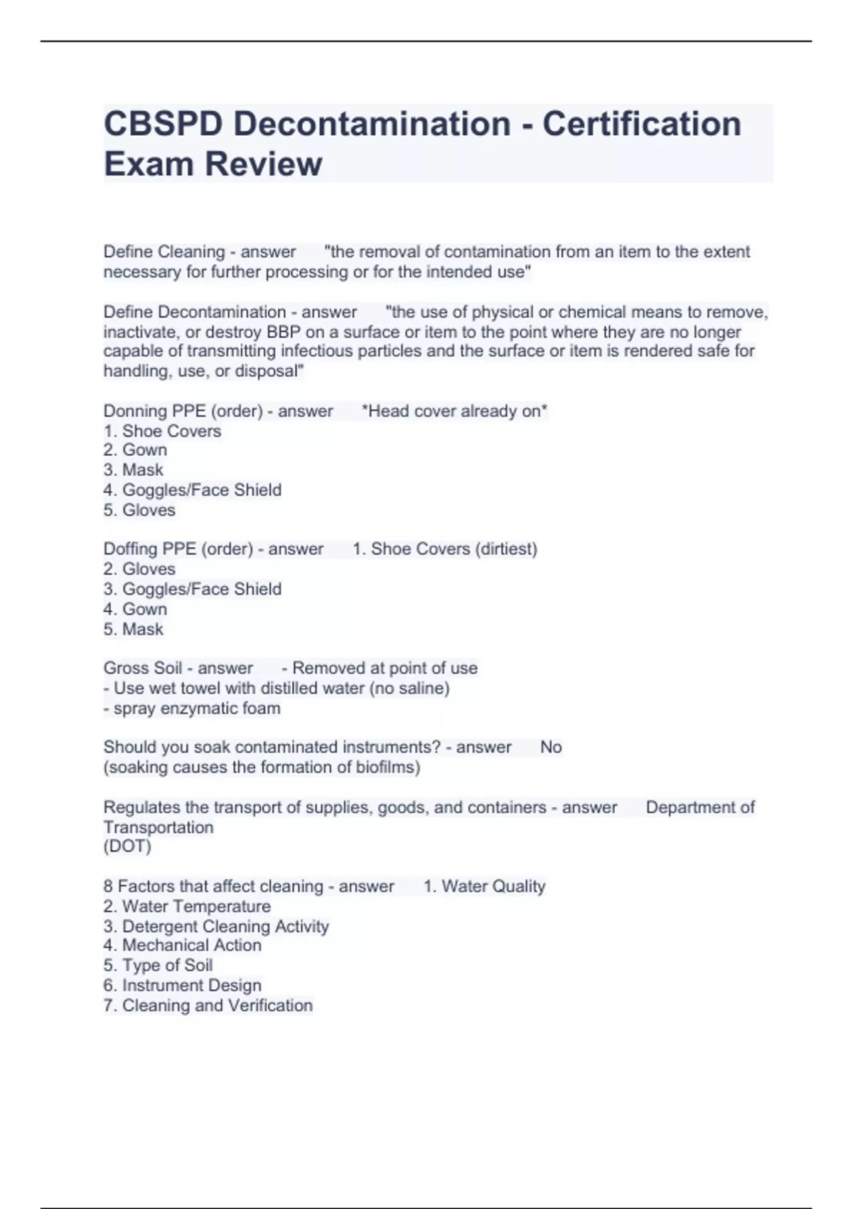 CBSPD Decontamination - Certification Exam Review Questions and Answers 100% Accurate
