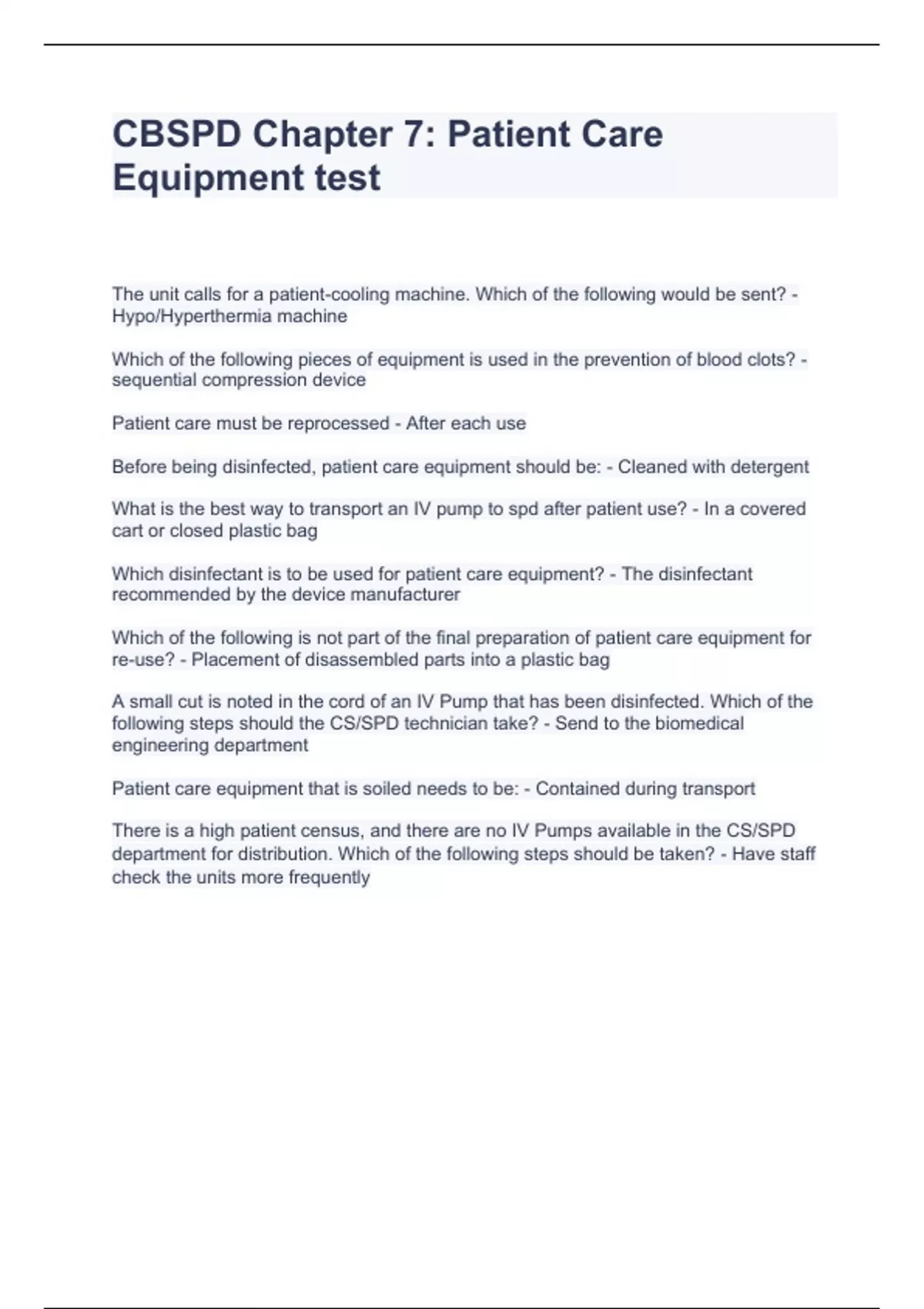 CBSPD Chapter 7. Patient Care Equipment test Questions and Answers Graded A