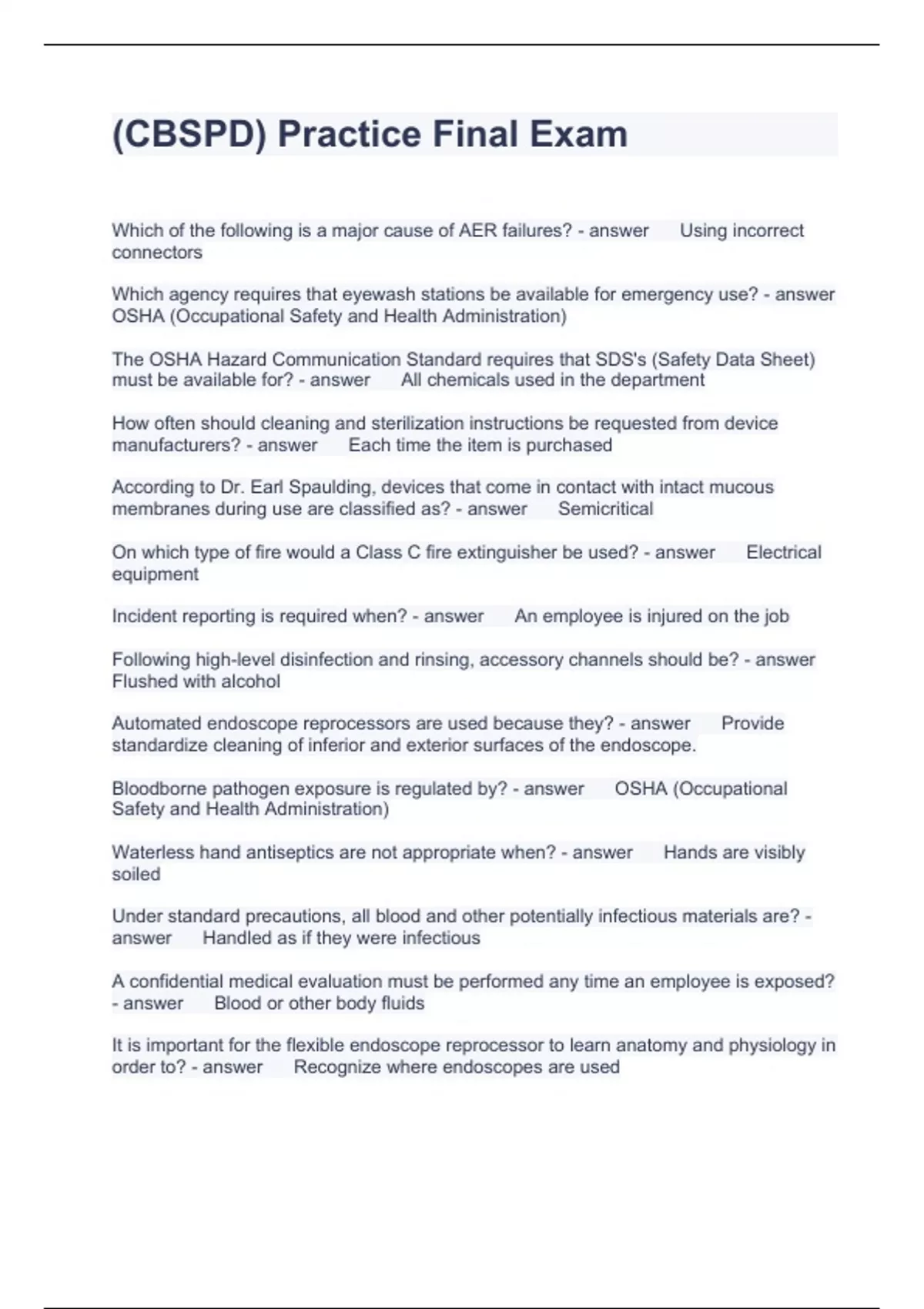(CBSPD) Practice Final Exam Questions and Answers 2024