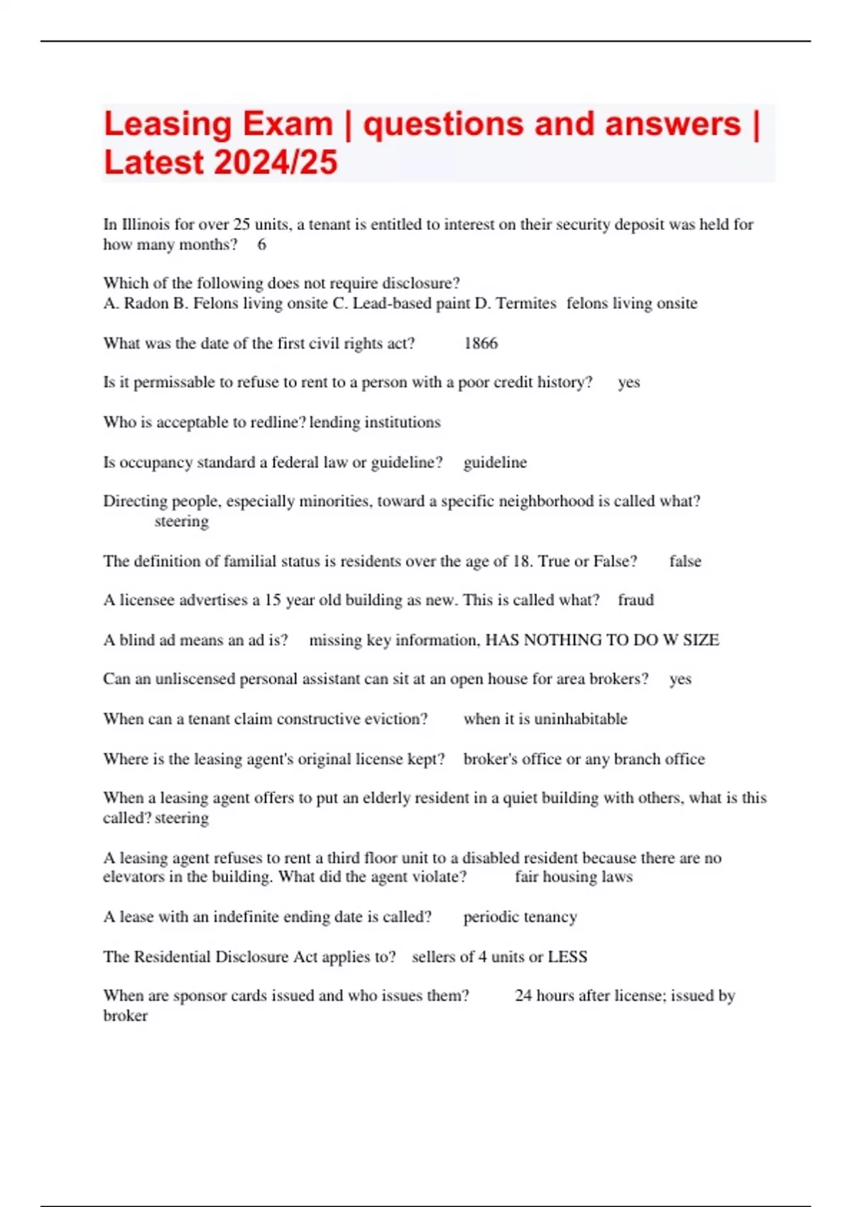 Leasing Exam | questions and answers | Latest 2024/25