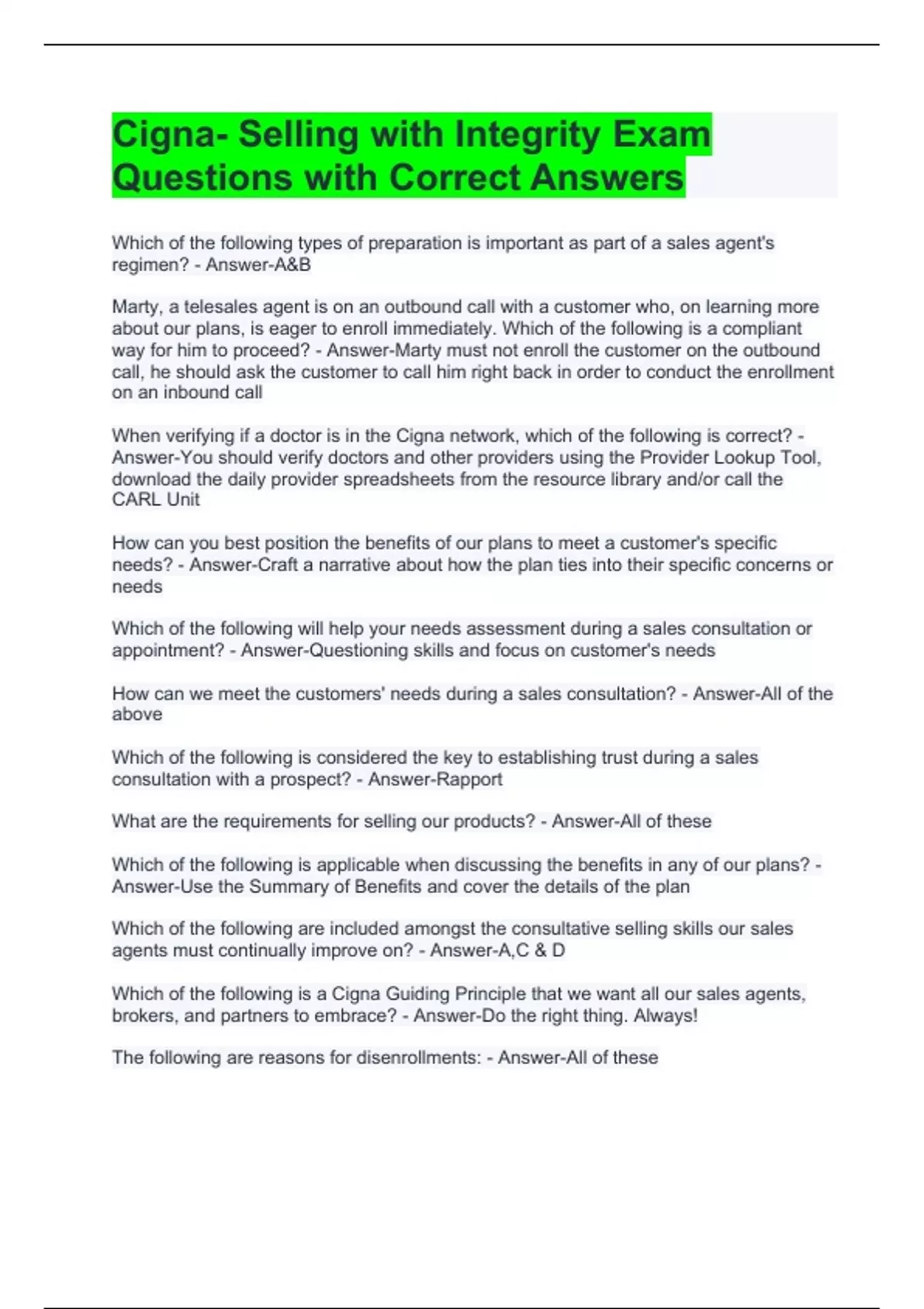 Answer-Use the Summary of Benefits and cover the details of the plan