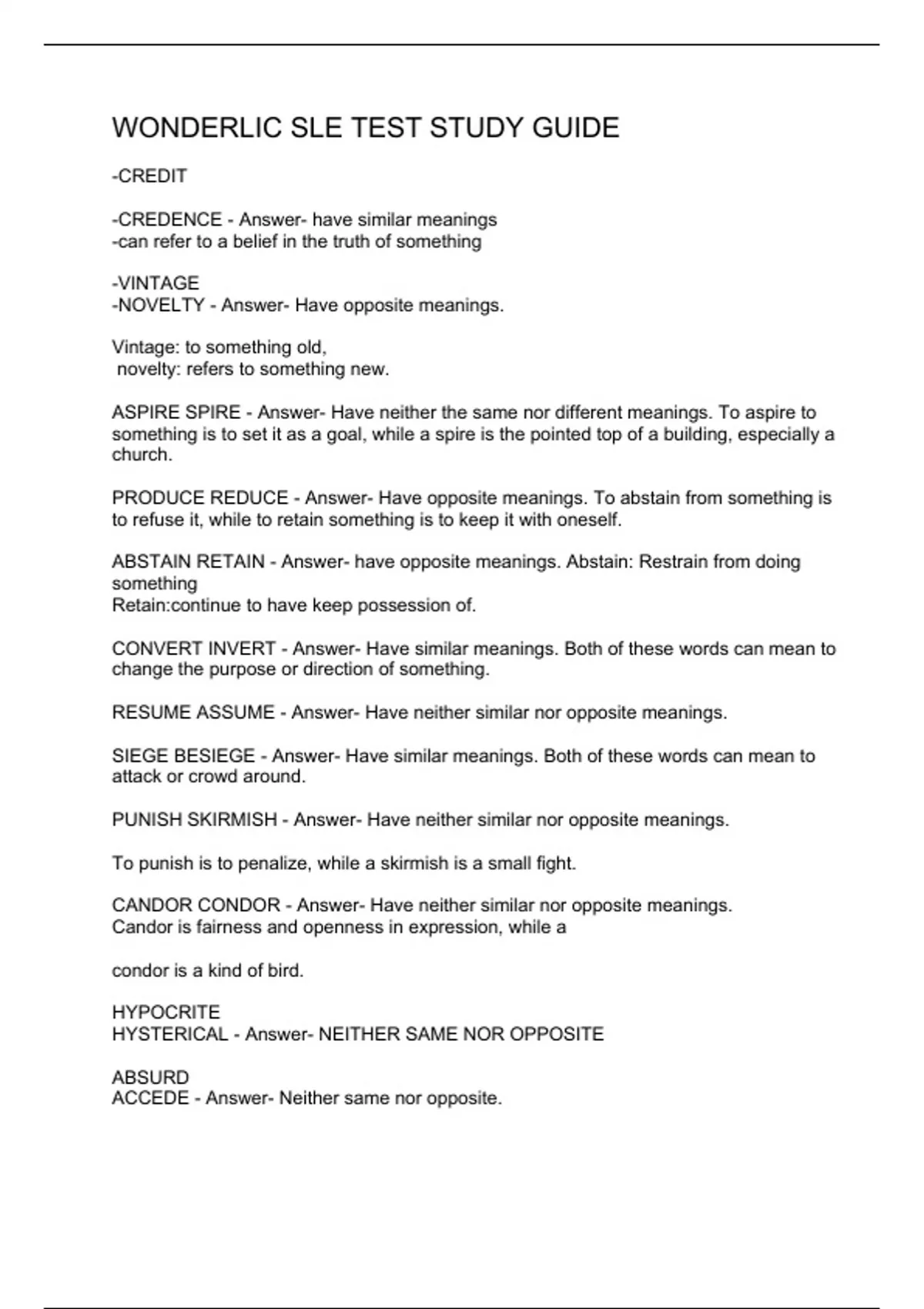 WONDERLIC SLE TEST STUDY GUIDE