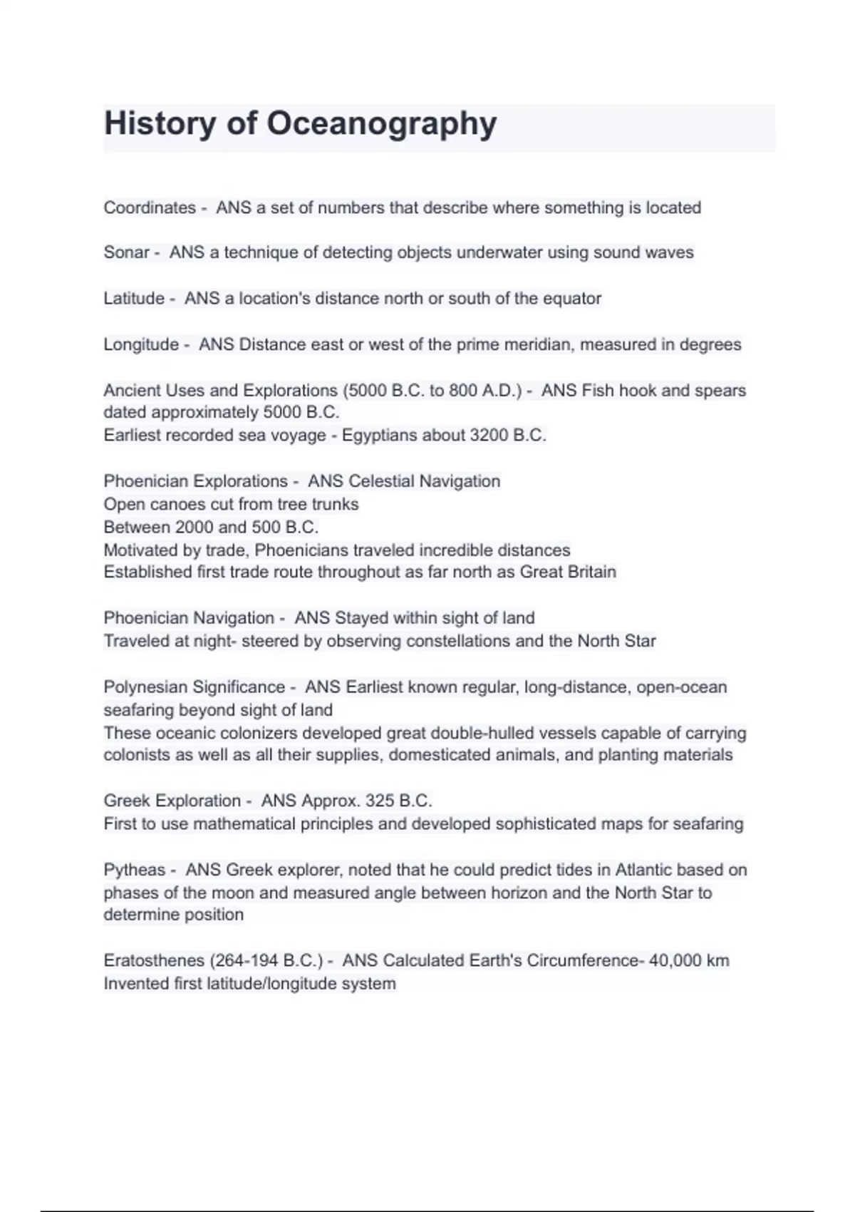 History of oceanography Questions And Answers 2024 100% Verified