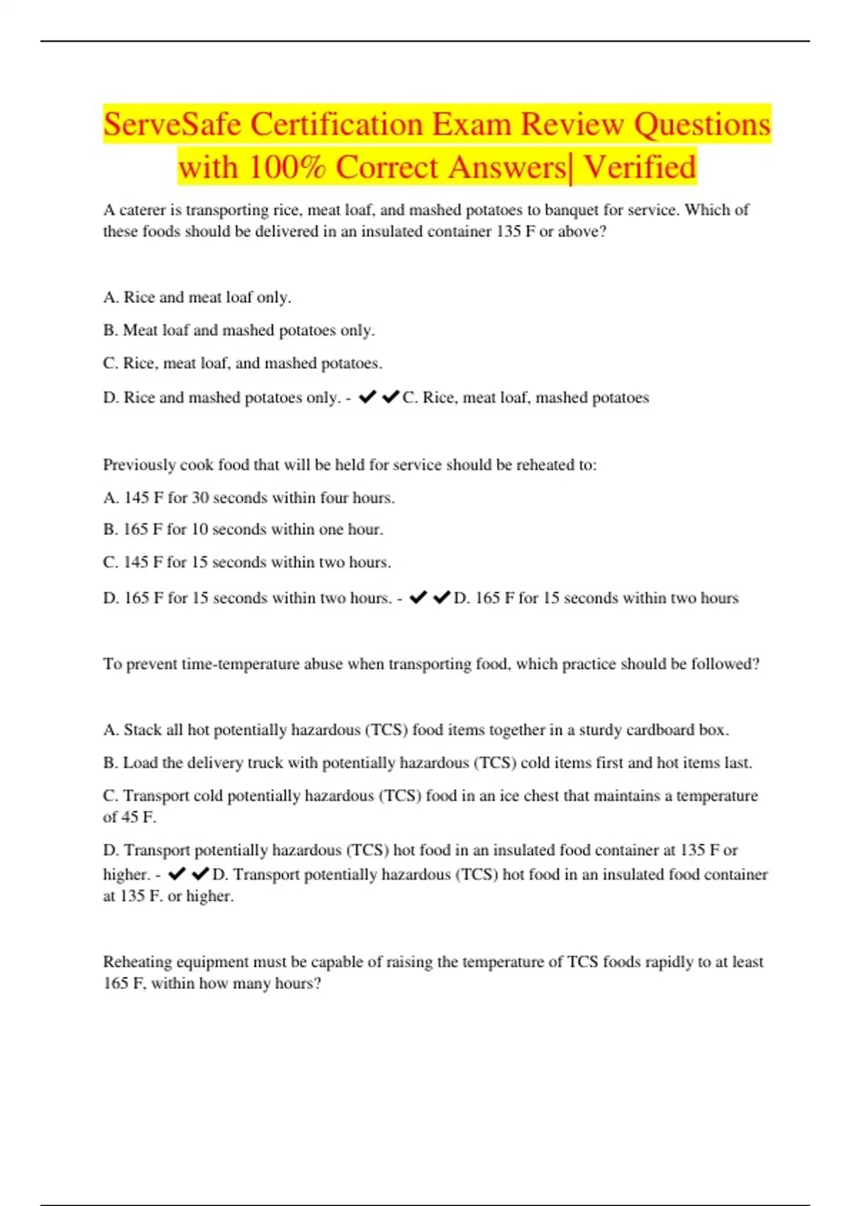 ServeSafe Certification Exam Review Questions with 100% Correct Answers| Verified