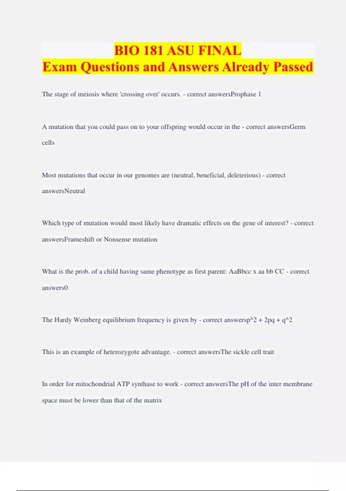 bio 181 asu final exam questions and answers