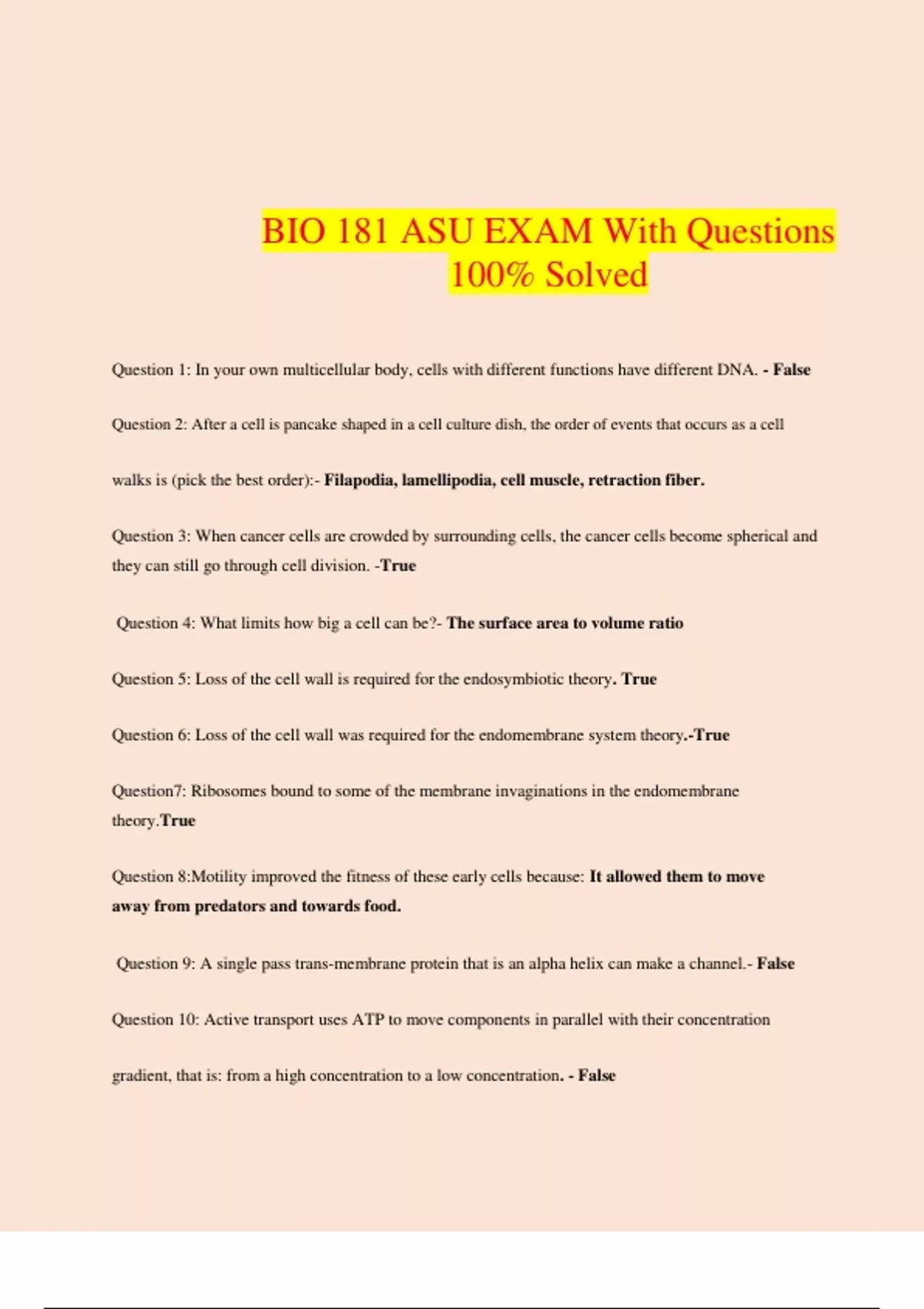 bio 181 asu exam with questions 100 solved