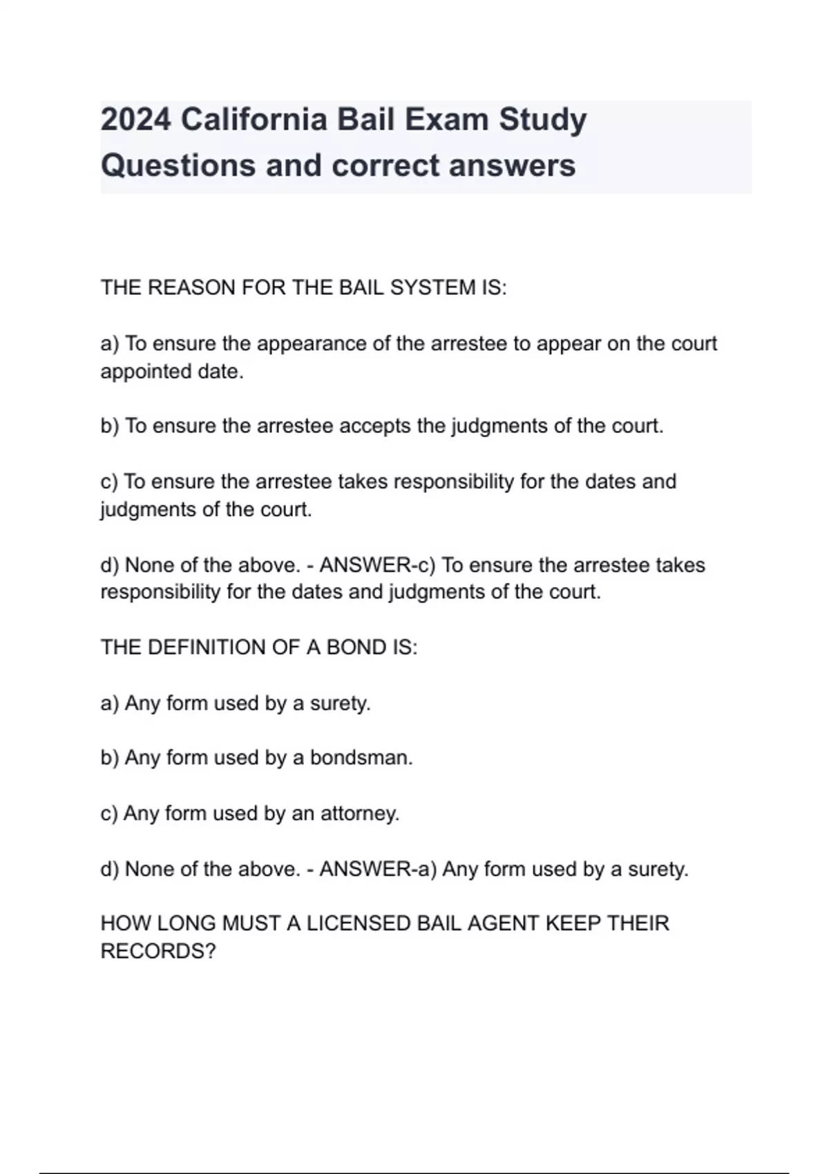 2024 california bail exam study questions and corr