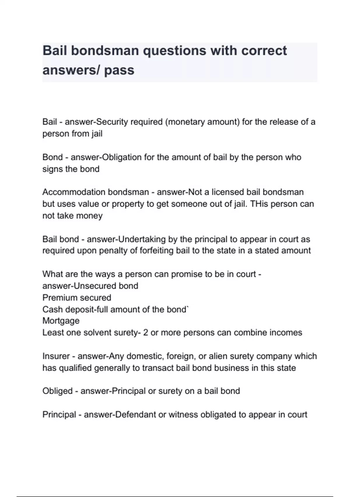 Bail bondsman questions with correct answers/ pass