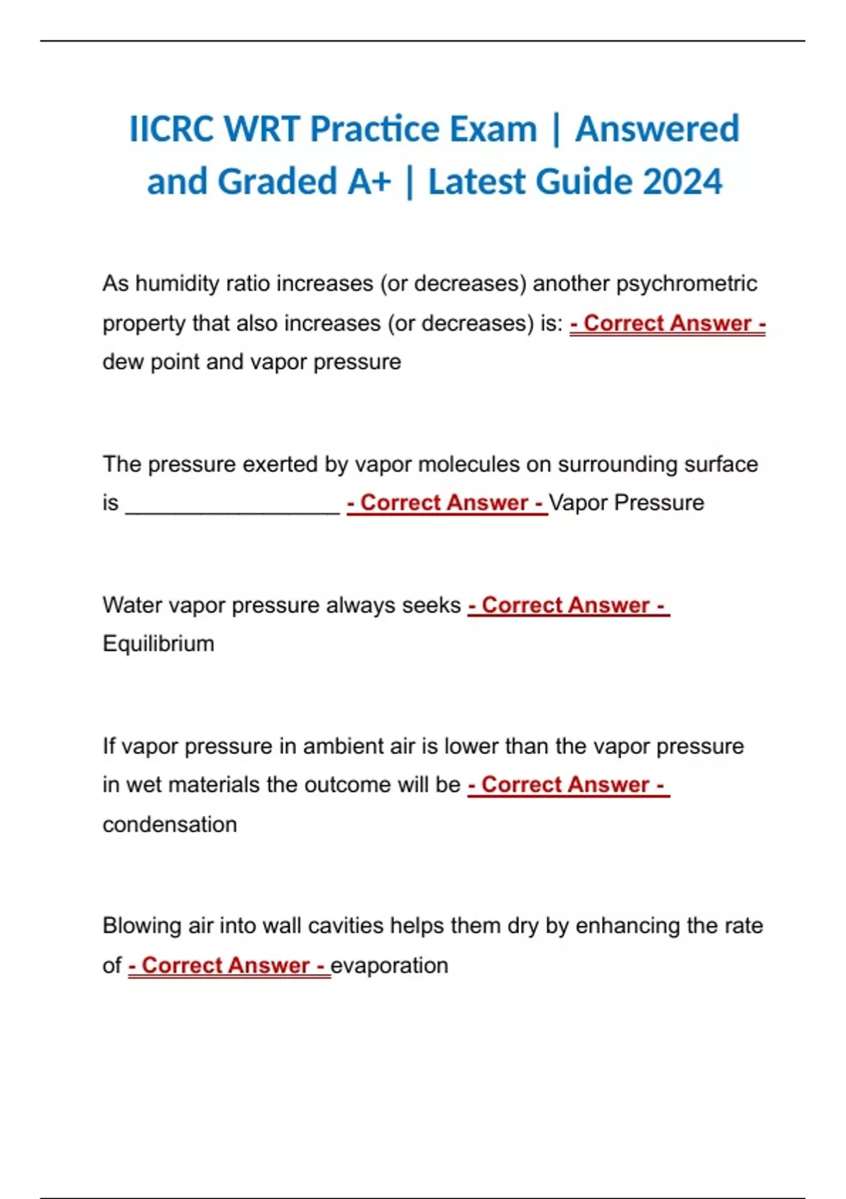 IICRC WRT Practice Exam | Answered and Graded A+ | Latest Guide 2024