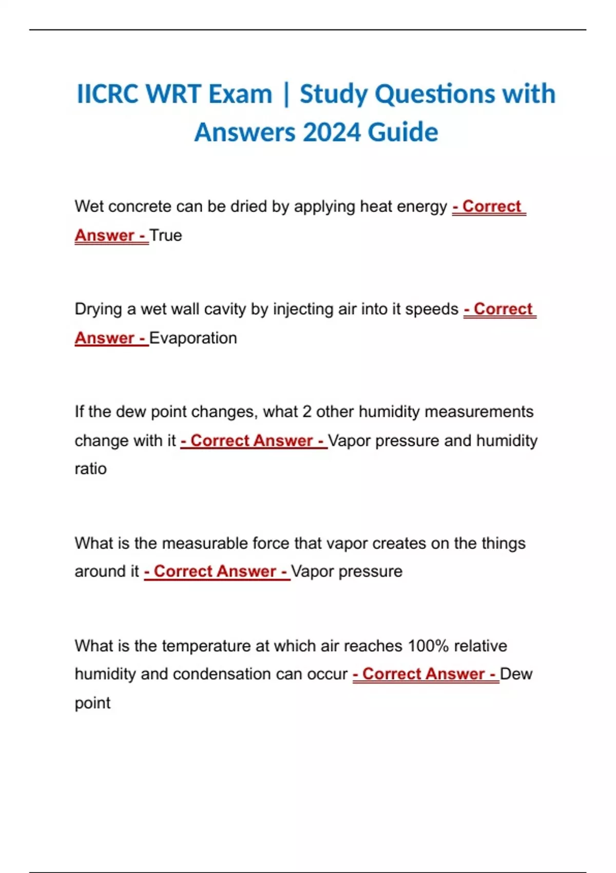 IICRC WRT Exam | Study Questions with Answers 2024 Guide IICRC WRT Exam | Study Questions with Answers 2024 Guide IICRC WRT Exam | Study Questions with Answers 2024 Guide