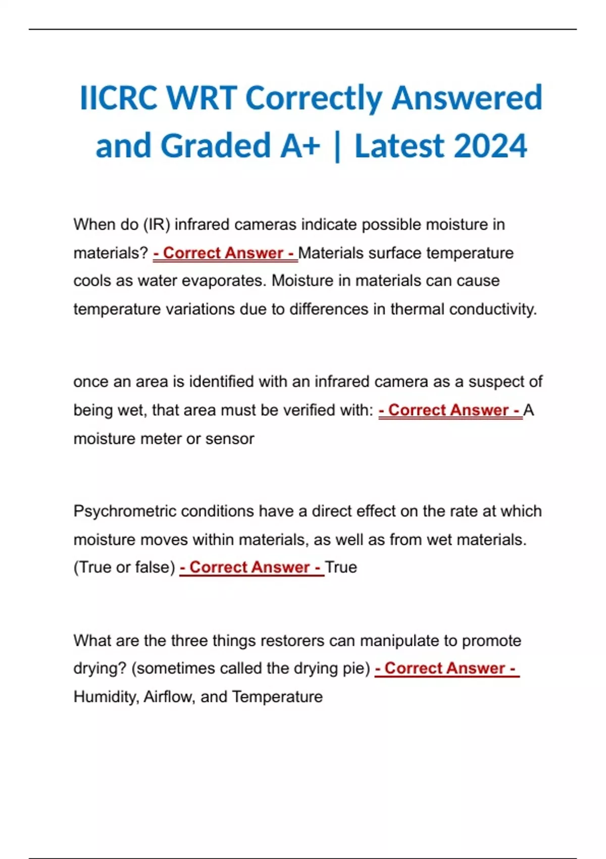 IICRC WRT Correctly Answered and Graded A+ | Latest 2024