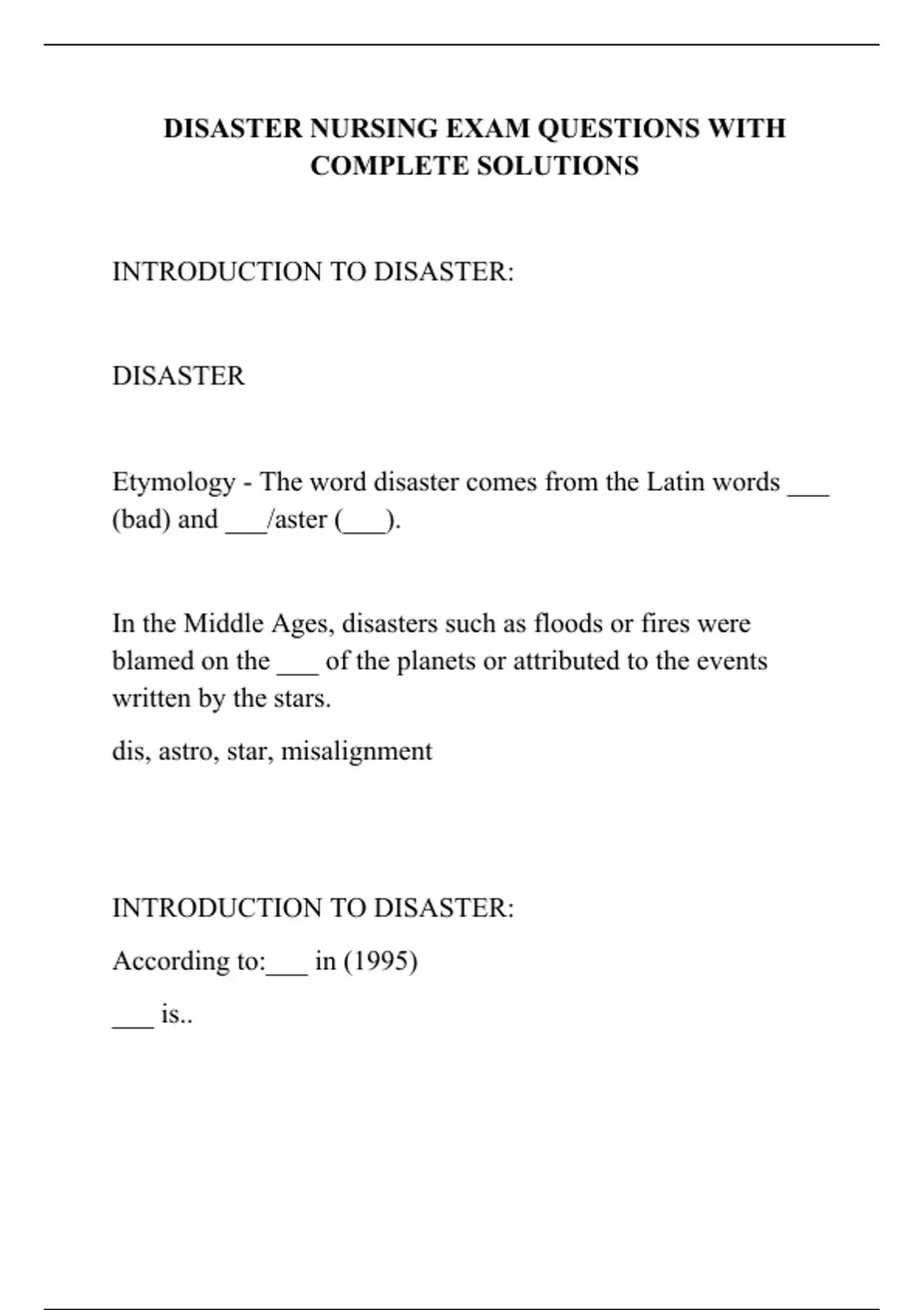 DISASTER NURSING EXAM QUESTIONS WITH COMPLETE SOLUTIONS