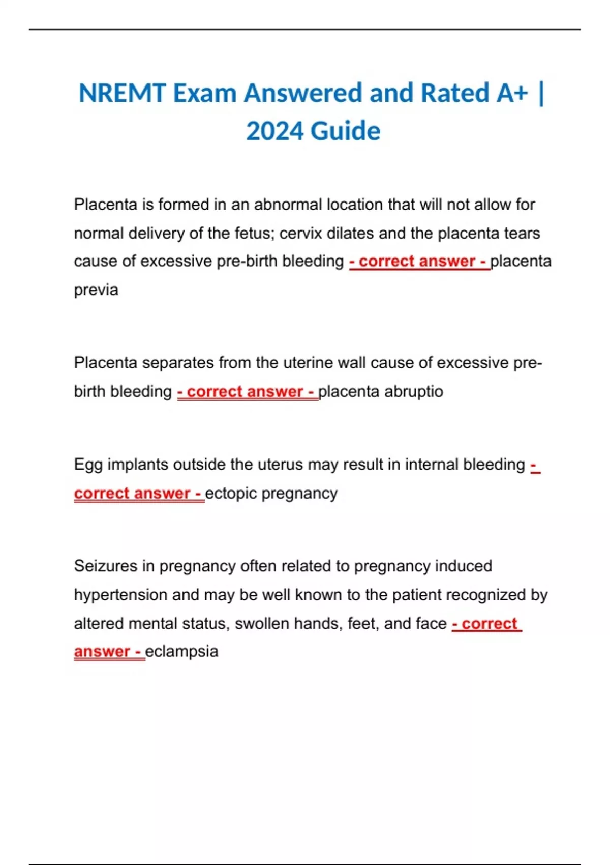 NREMT Exam Answered and Rated A+ | 2024 Guide