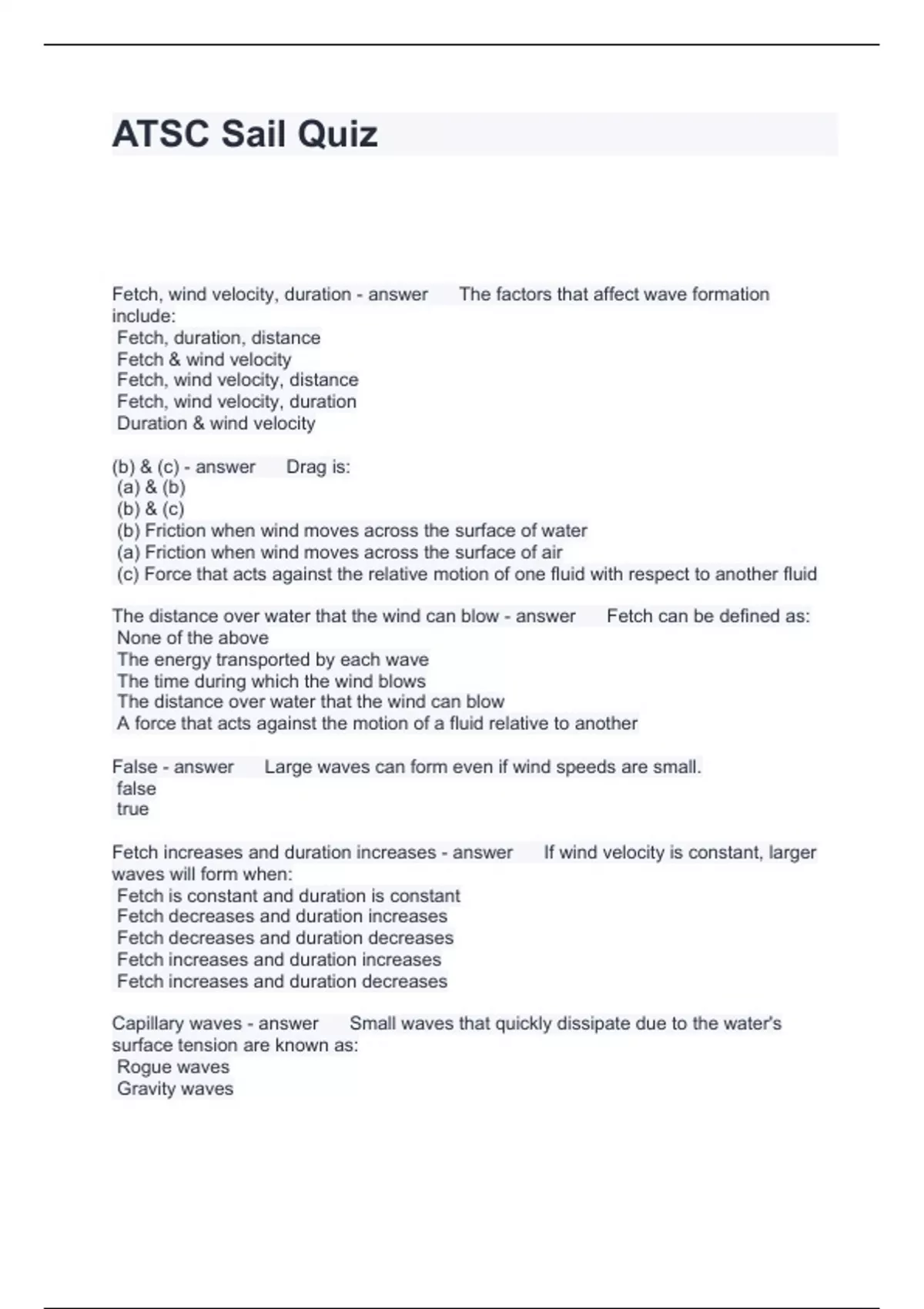 Exam of 18 pages for the course ATSC at ATSC (ATSC Sail Quiz)