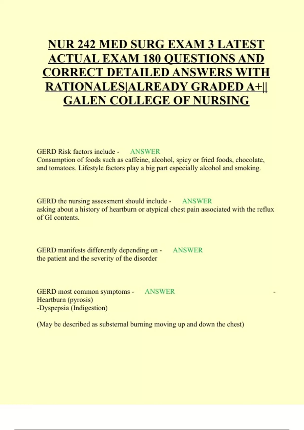 NUR 242 MED SURG EXAM 3| EXAM 4 LATEST ACTUAL EXAM 180 QUESTIONS AND CORRECT DETAILED ANSWERS WITH RATIONALES|ALREADY GRADED A+||GALEN COLLEGE OF NURSING