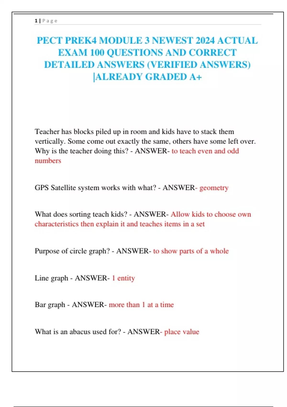 PECT PREK4 MODULE 3 NEWEST 2024 ACTUAL EXAM 100 QUESTIONS AND CORRECT DETAILED ANSWERS (VERIFIED ANSWERS) |ALREADY GRADED A+