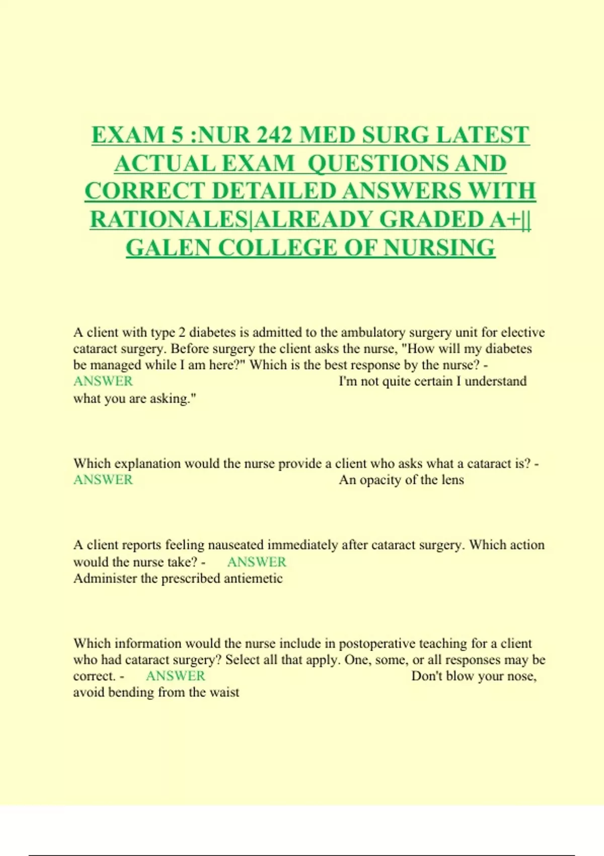 nur 242 med surg latest actual exam questions an