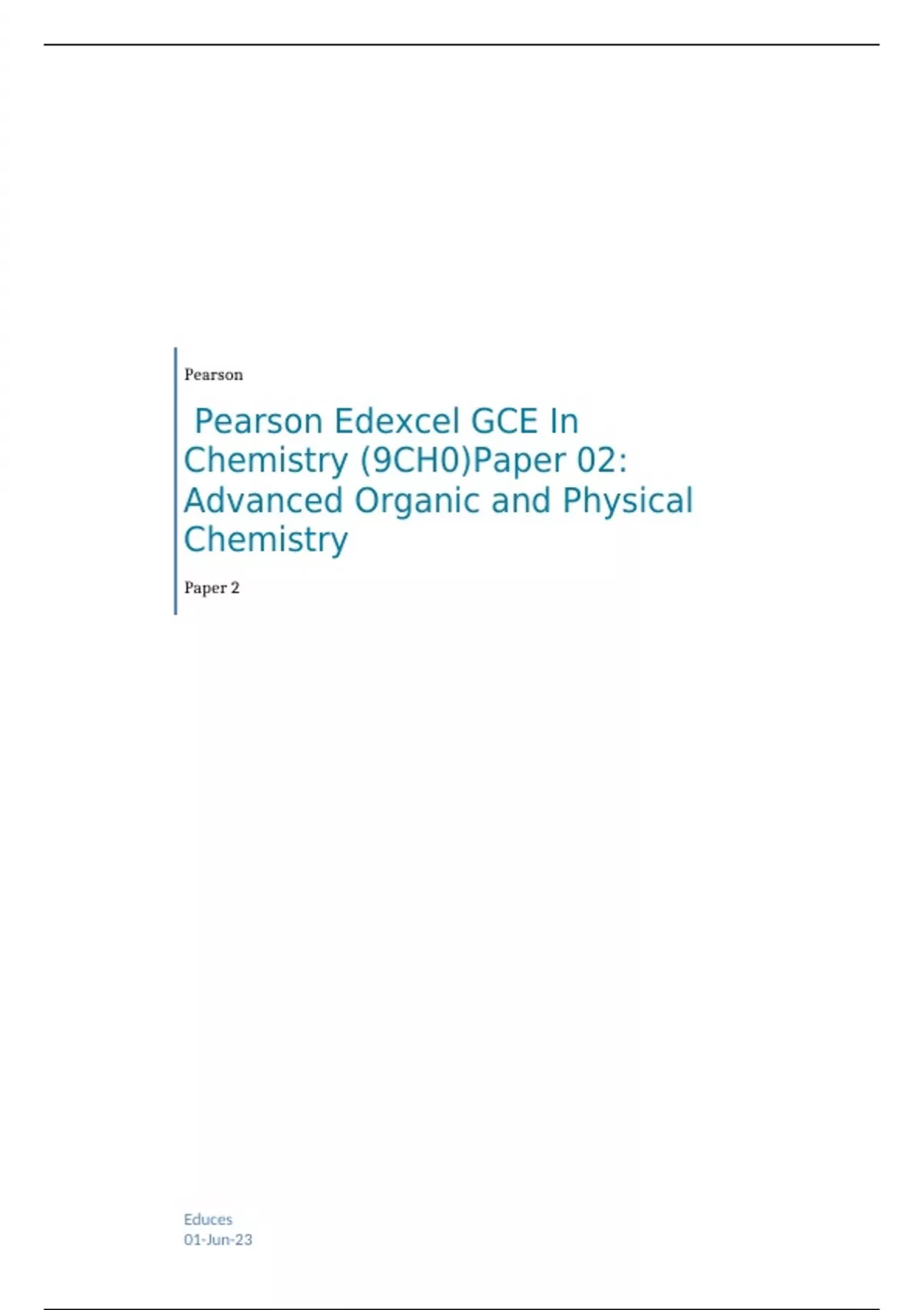 Edexcel GCE In Chemistry (9CH0)Paper 02: Advanced Organic and Physical Chemistry