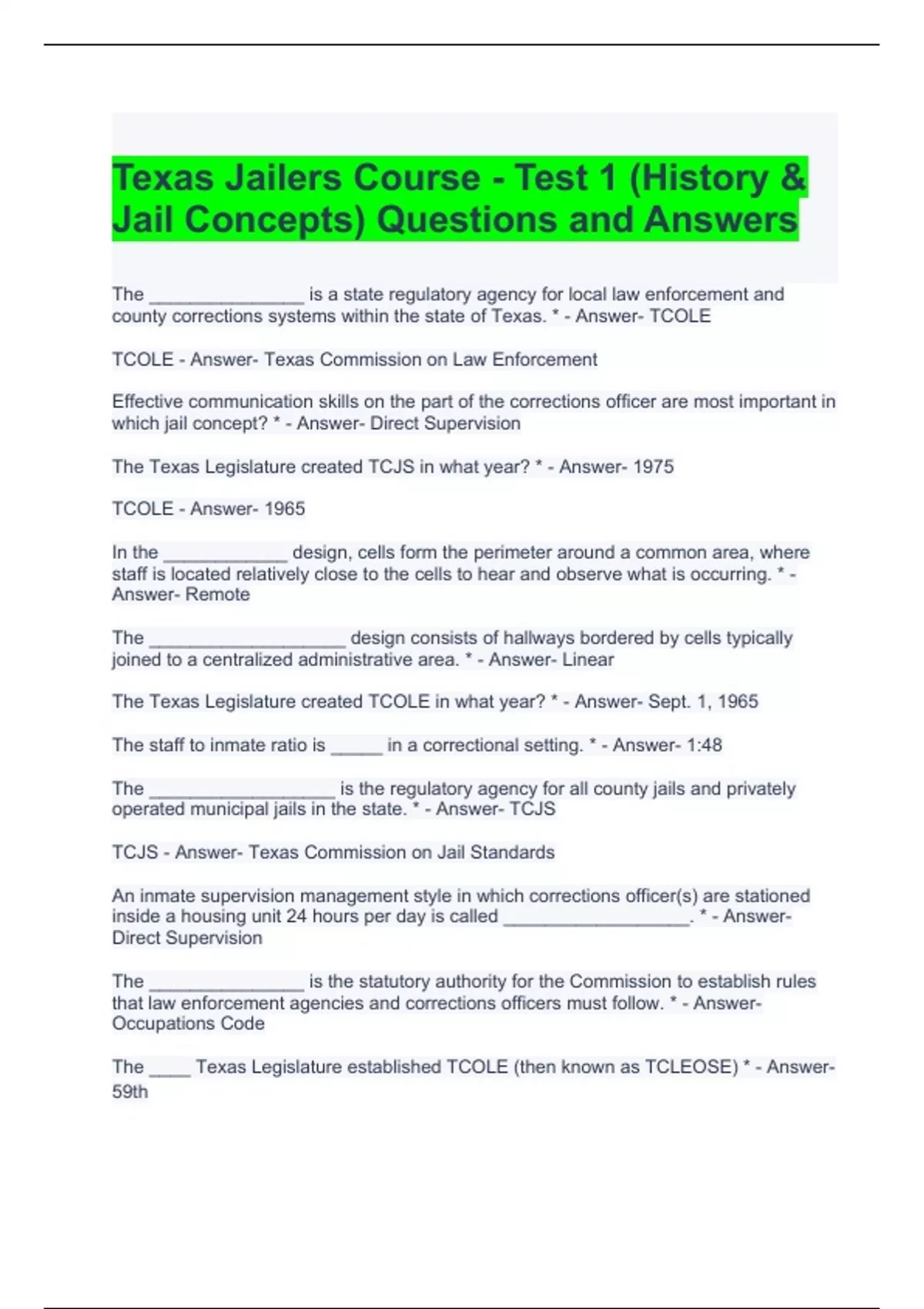 TCOLE JAILER Exam Bundle