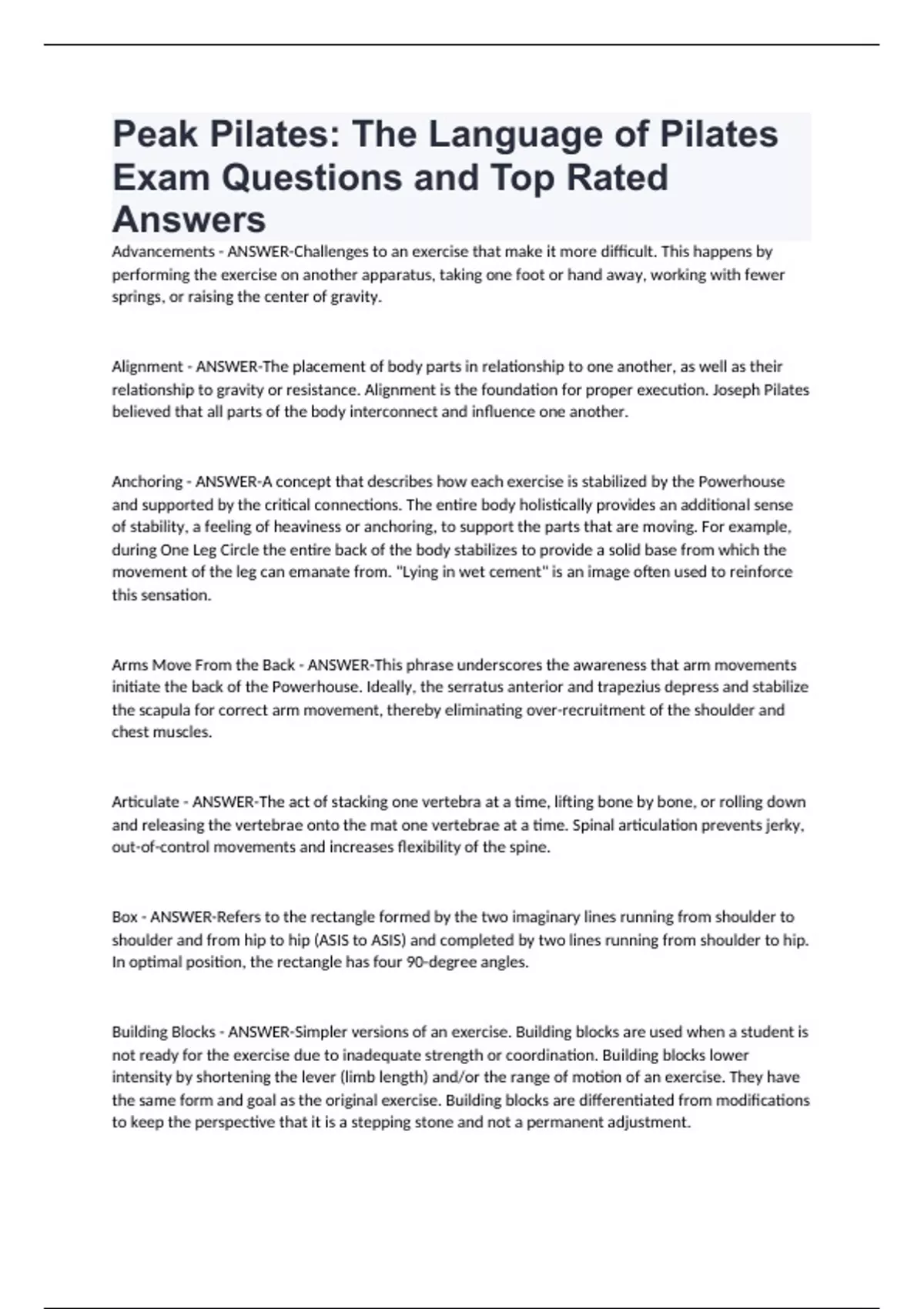 Peak Pilates Exam Bundle Questions and Answers Verified by Experts