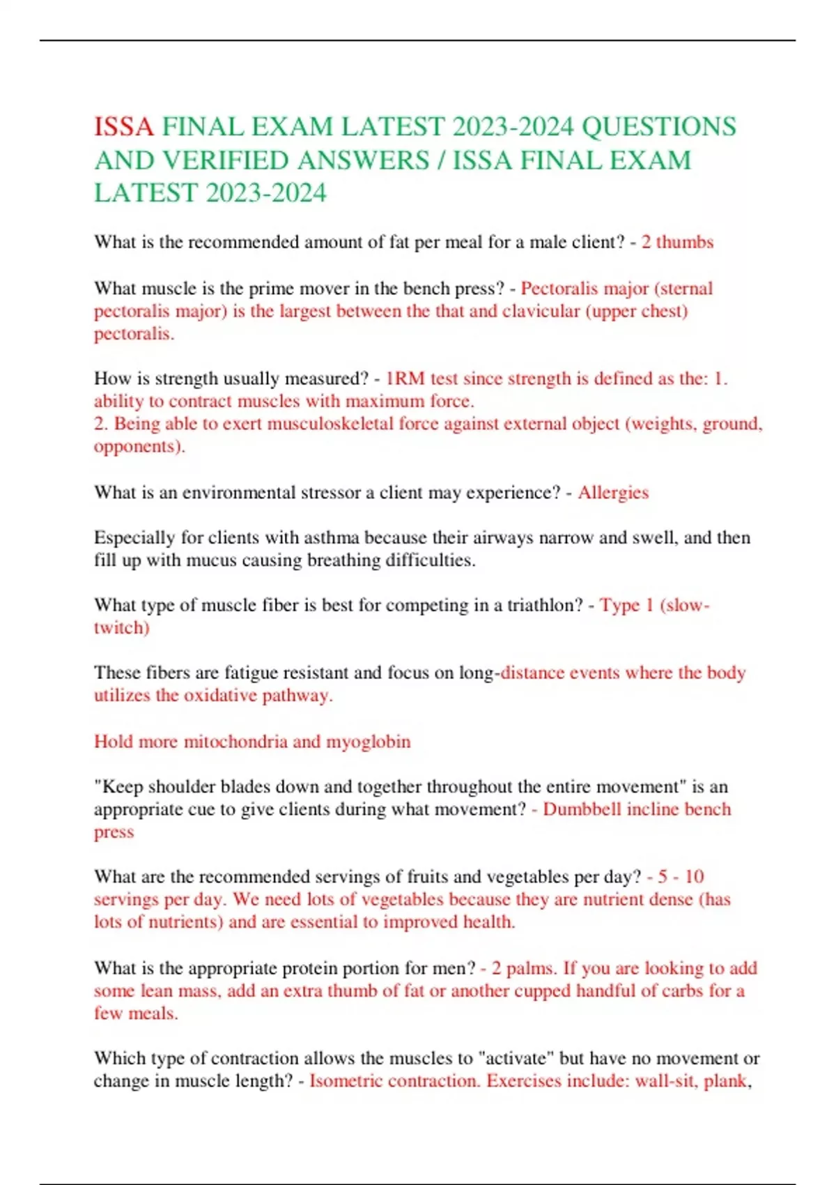 ISSA FINAL EXAM LATEST QUESTIONS AND VERIFIED ANSWERS / ISSA FINAL EXAM LATEST
