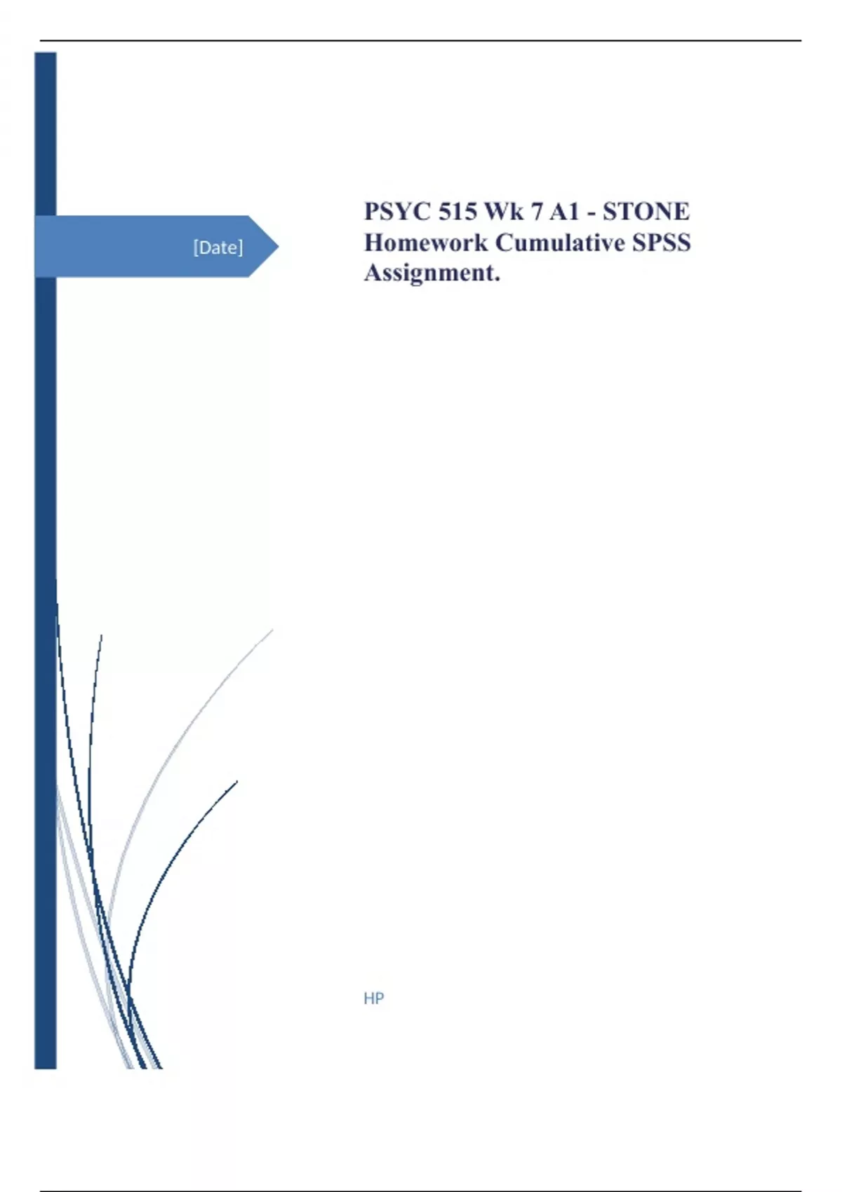 PSYC 515 Wk 7 A1 - STONE Homework Cumulative SPSS Assignment.
