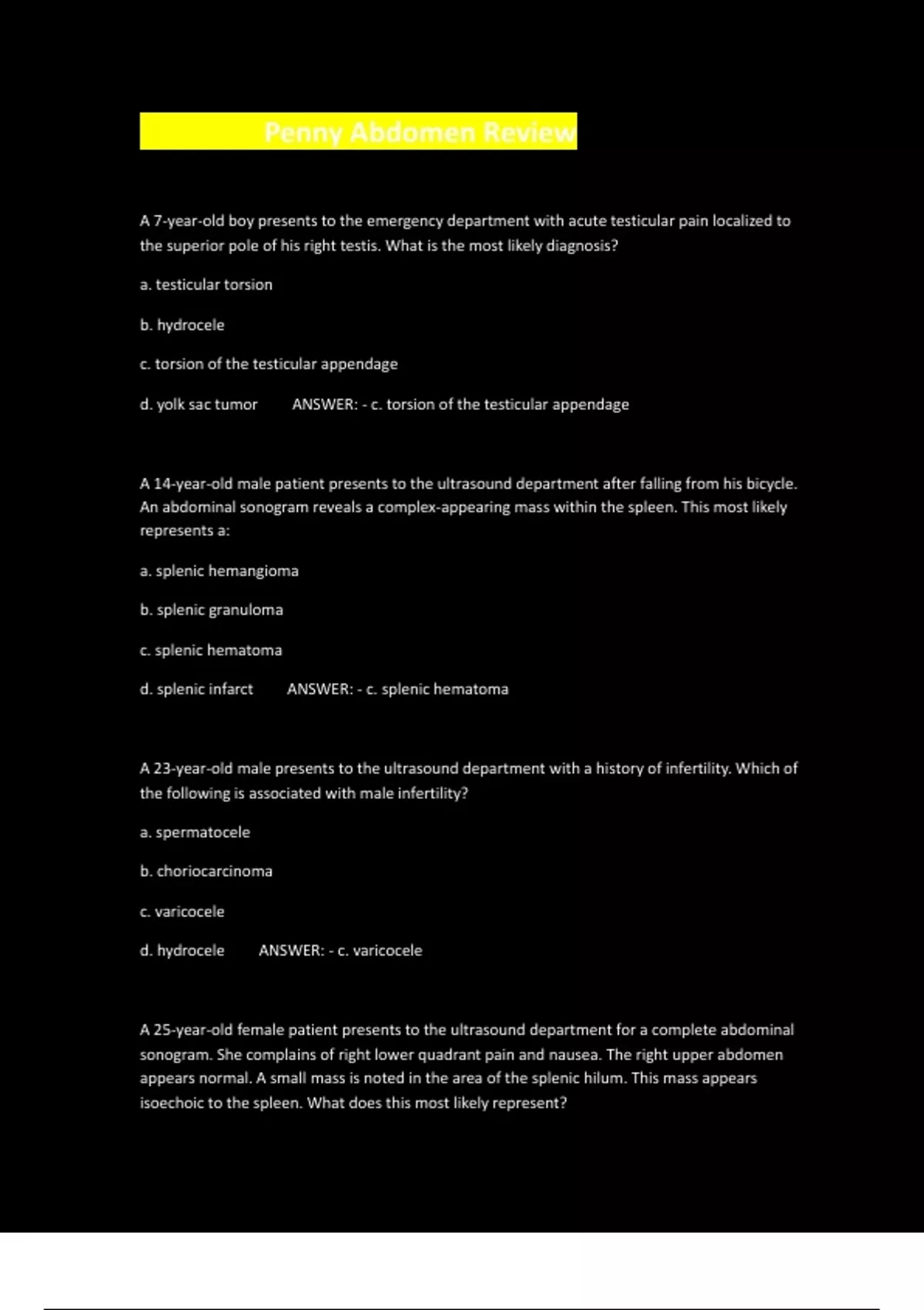 Penny Abdomen Review With 100+ Well Answered Questions |Graded A+|