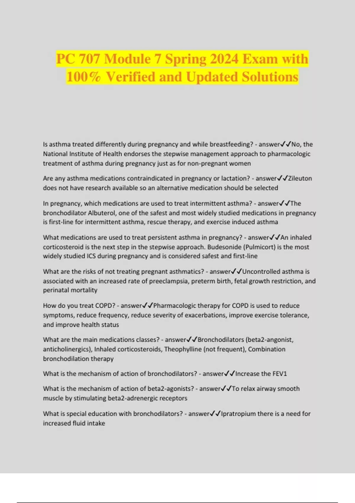 PC 707 Module 7 Spring 2024 Exam with 100% Verified and Updated Solutions