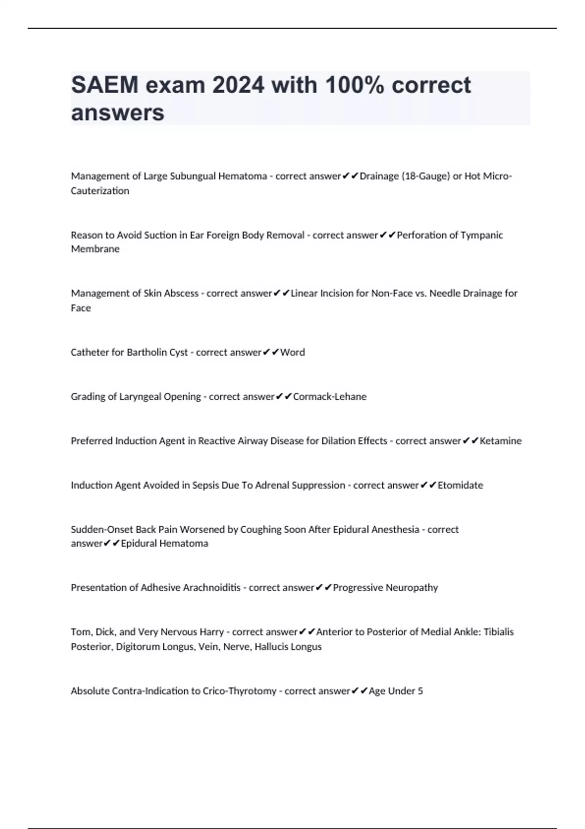 SAEM exam 2024 with 100% correct answers
