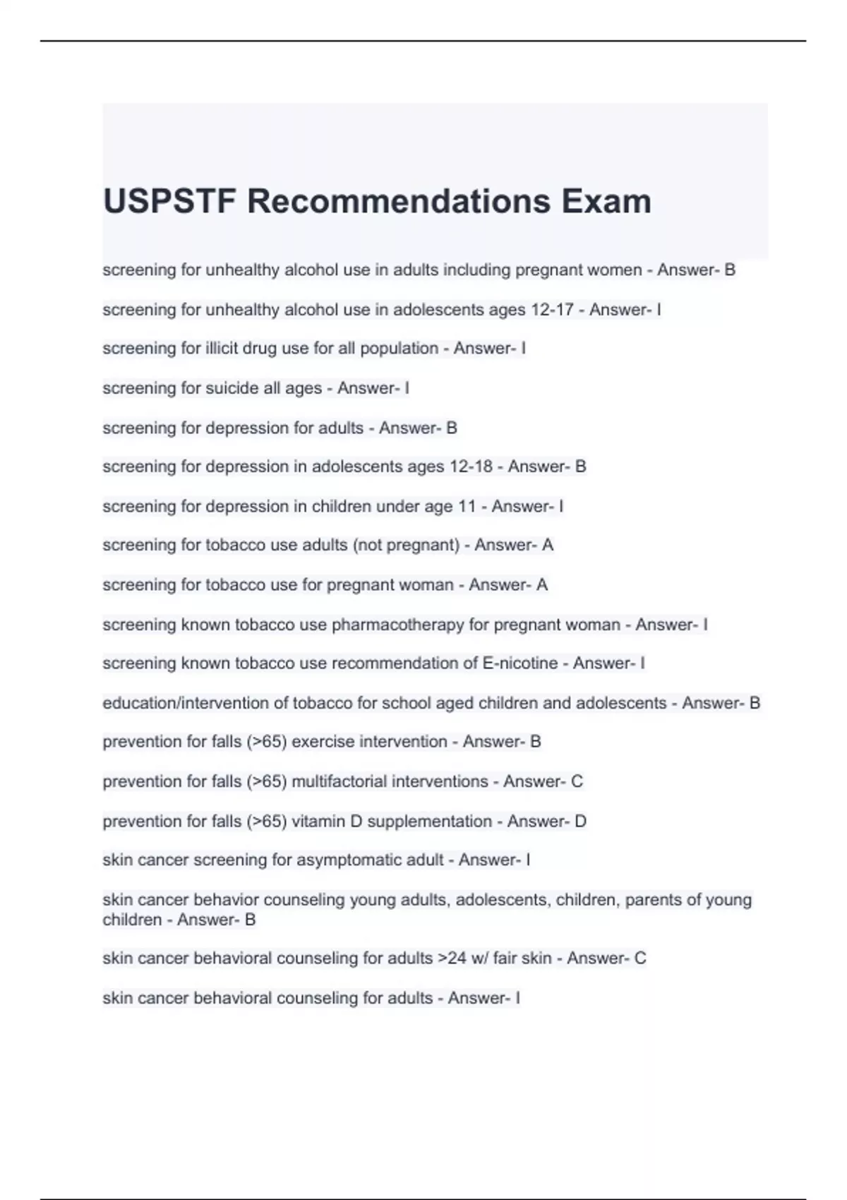 USPSTF Recommendations Exam with 100% correct Answers